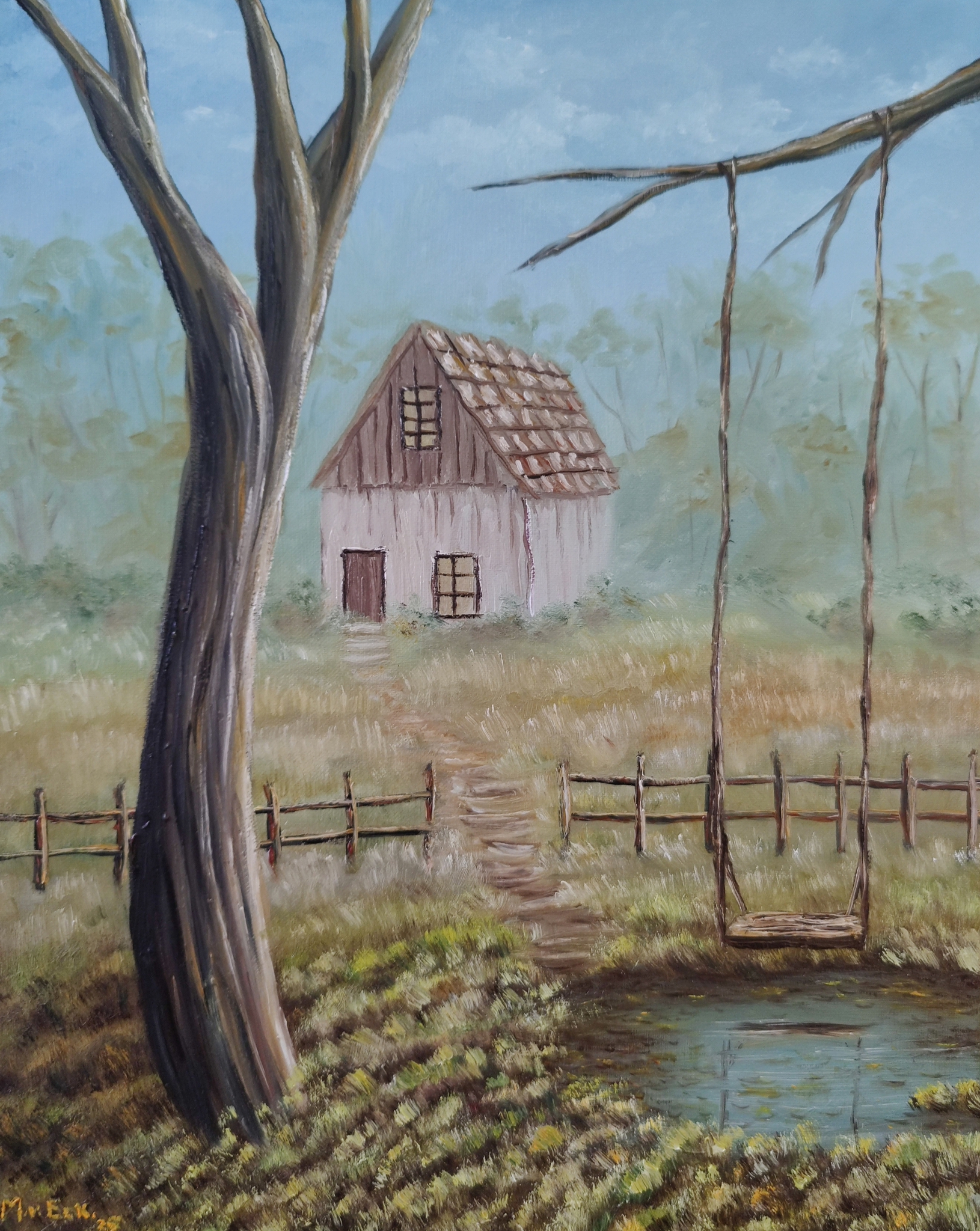 Landschap Olieverf Natuur Olieverfschilderij Bos Landscape Bossen Nature Landschappen Schommel Swing Natuurlandschap Cottage Landscapelover