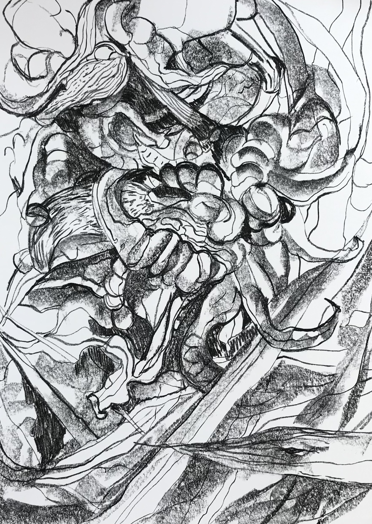 Deze tekening maakte ik van wat over was van de irissen in mijn tuin. Ik was gefascineerd door het lijnenspel en de grilligheid. Echt weer een stukje schoonheid van verval.