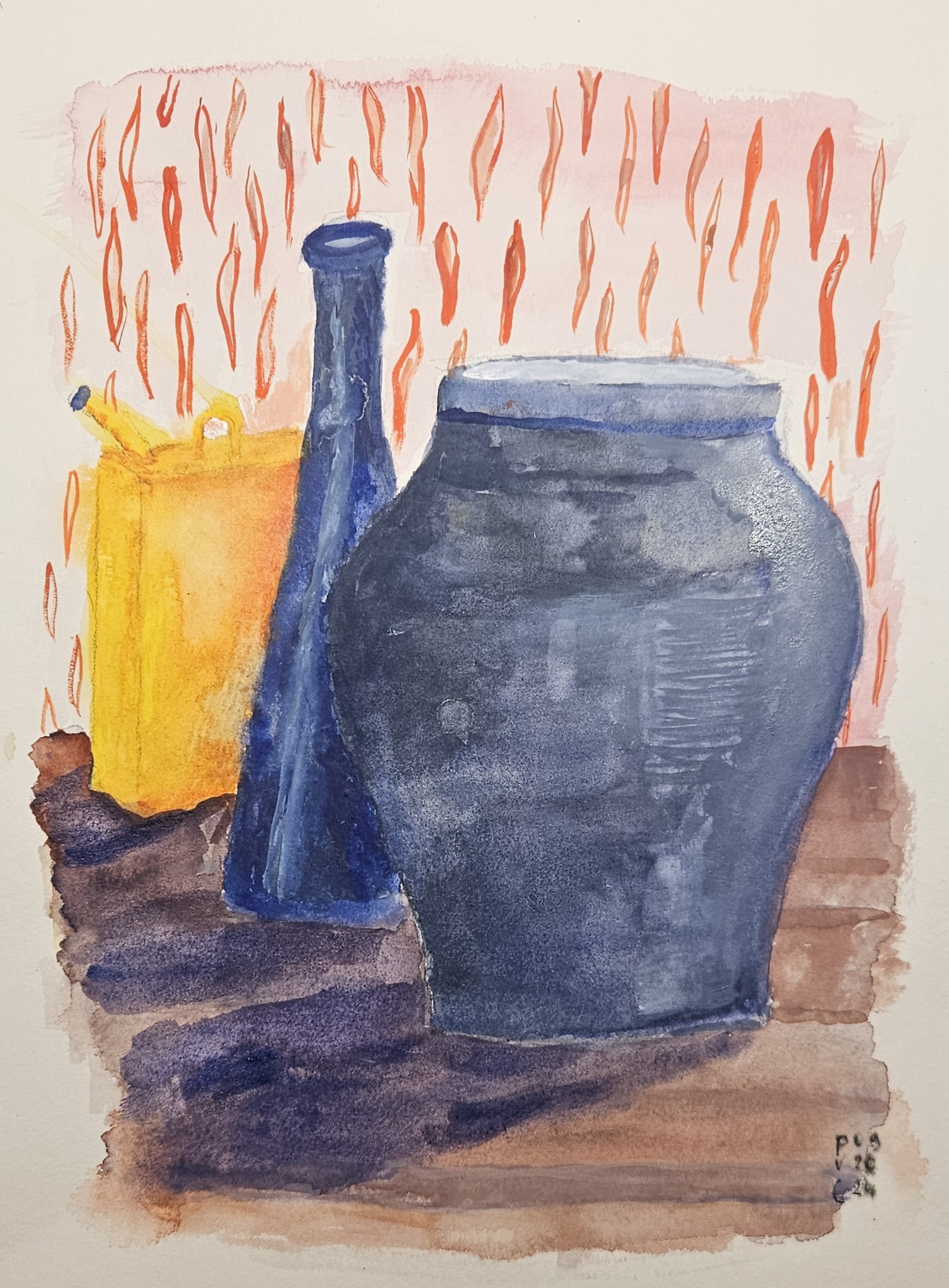 Mooie vaas op tafel, gemaakt rijdens een avond bij Kunstkring Tilburg.