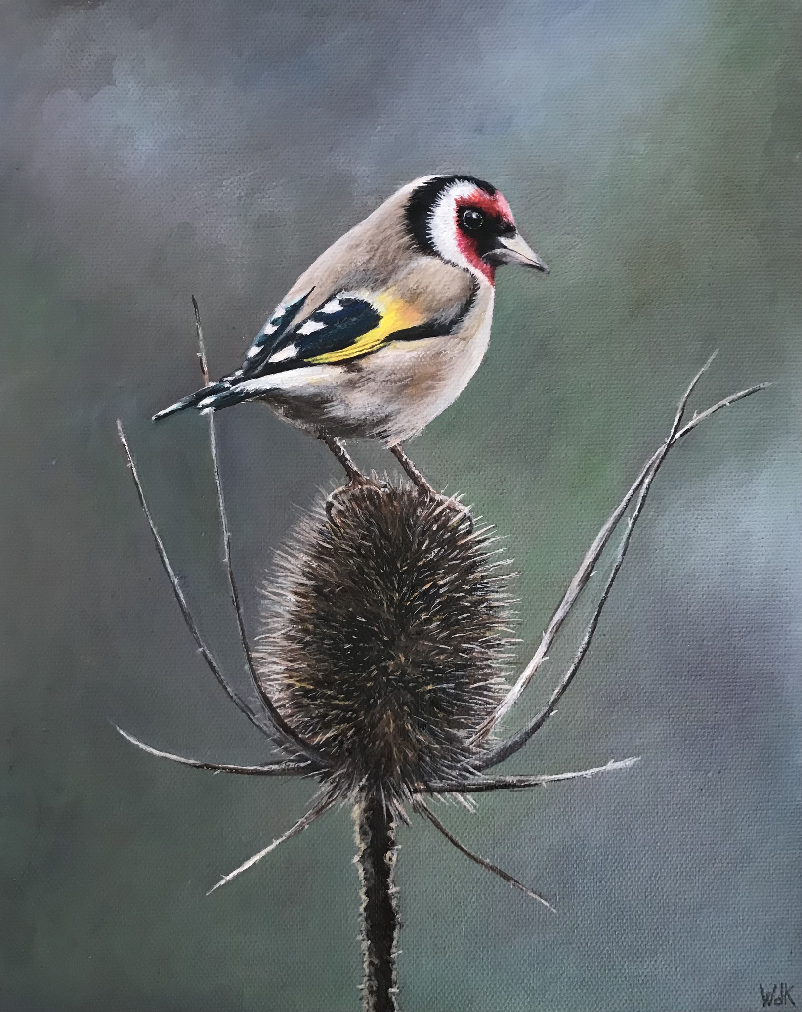 Puttertje/distelvink olieverf op paneel 24x30 cm lijstje zwart