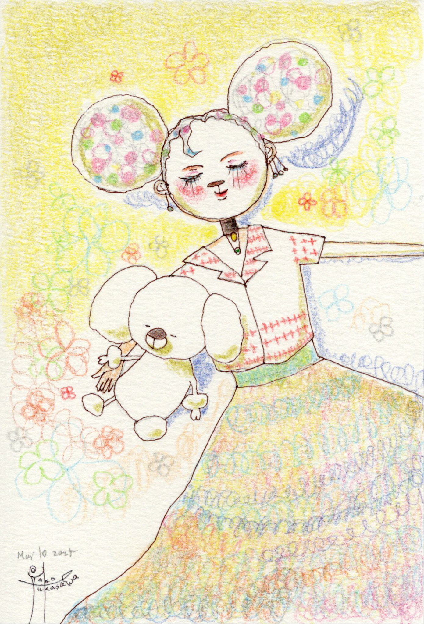 Yoko Fukasawa was born in 1982. 2001-Japan traditional craft department,Metal crafts major 2001-Volkswagen new Beetle - art contest The third place. 2002-TOKYO DOME - Tableware festival Fine work. 2017-And Schizophrenia has been revealed. Her paintings are outsider art. They are characterized by simple shapes and bright colors. She wants you to look at them and relax.