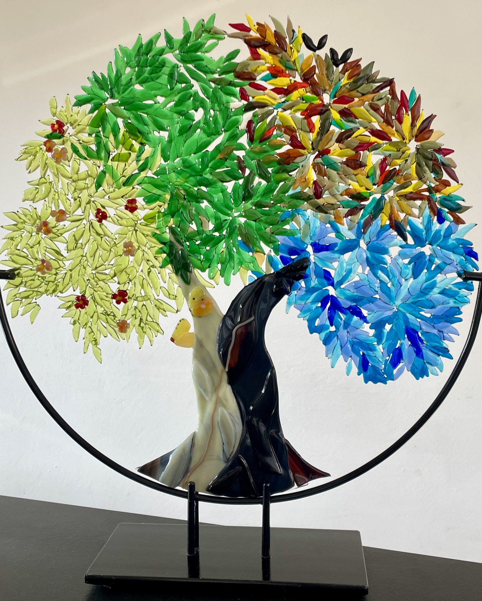 Levensboom met herinneringen, zoals de vlinders. Voor haar dochter en de opdrachtgeefster hebben deze Citroenvlinders een warme betekenis. memorial met de as.