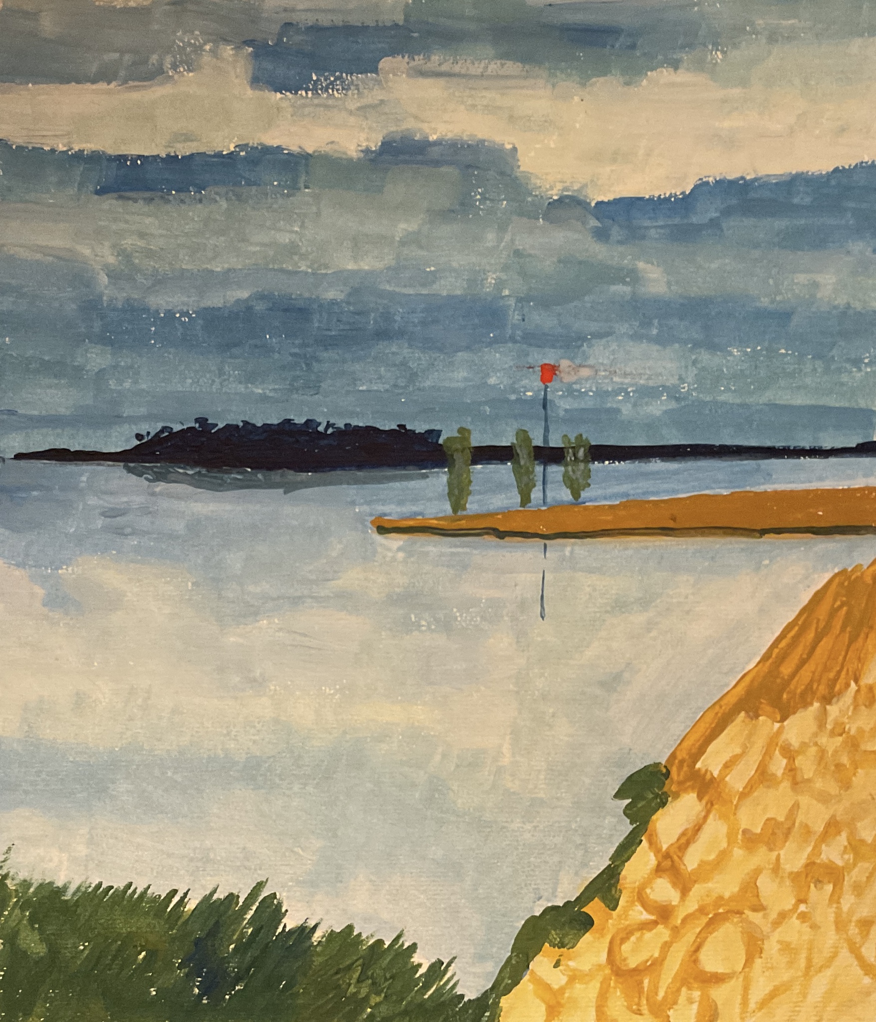 Rood Oranje Geel Blauw Wolken Groen Lucht Horizon Krib Struiken Basaltblokken Waarschuwingsteken
