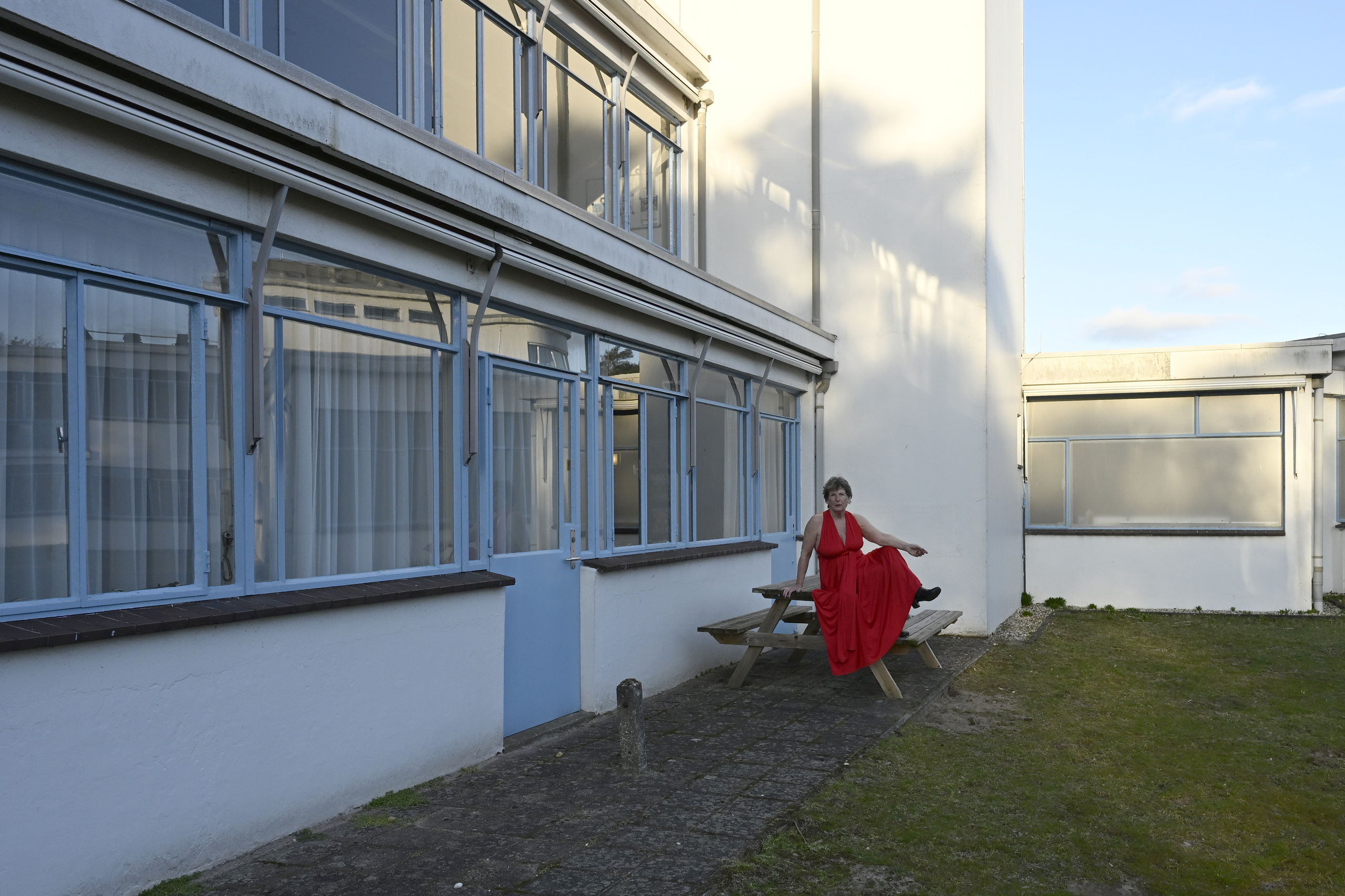 Dit kan ik niet laten gaan. Zo'n mooie omgeving. Prachtig gebouw waar mijn jurk leuk tegen contrasteerd.