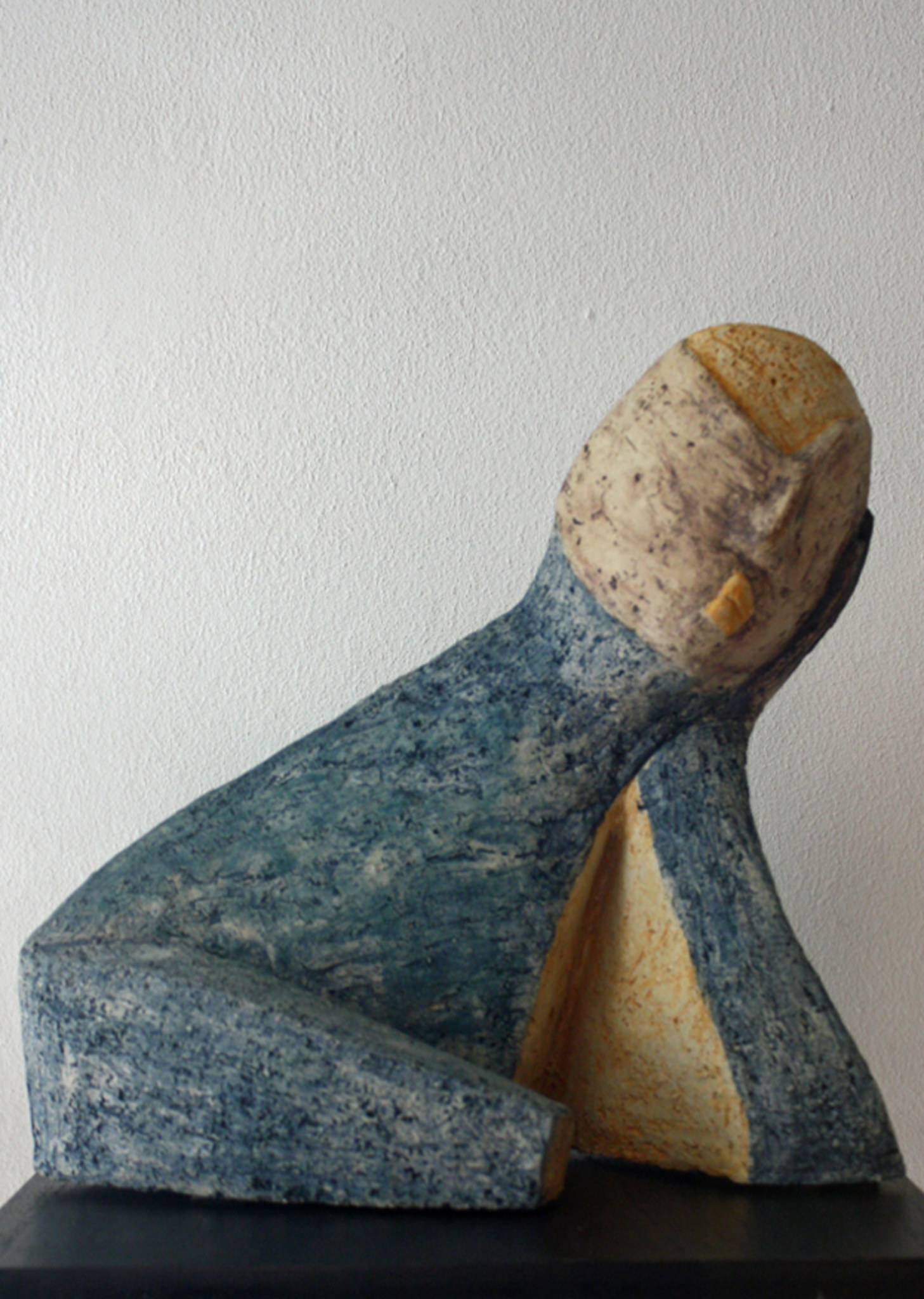 Klei, grof, gevormd, geduwd, geschraapt. Ruwe huid, schrale kleur en soms gecombineerd met metaal. Hiermee kan ik mijn ideeën en gedachten verbeelden. Mijn beeld vertelt, de kijker luistert.