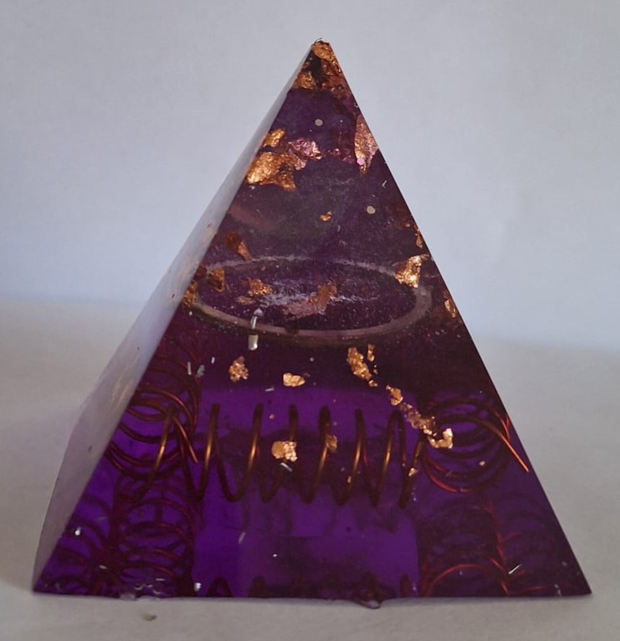 Orgonite / Piramide Paars Koperen Ring Bladgoud Koperdraad Epoxyhars