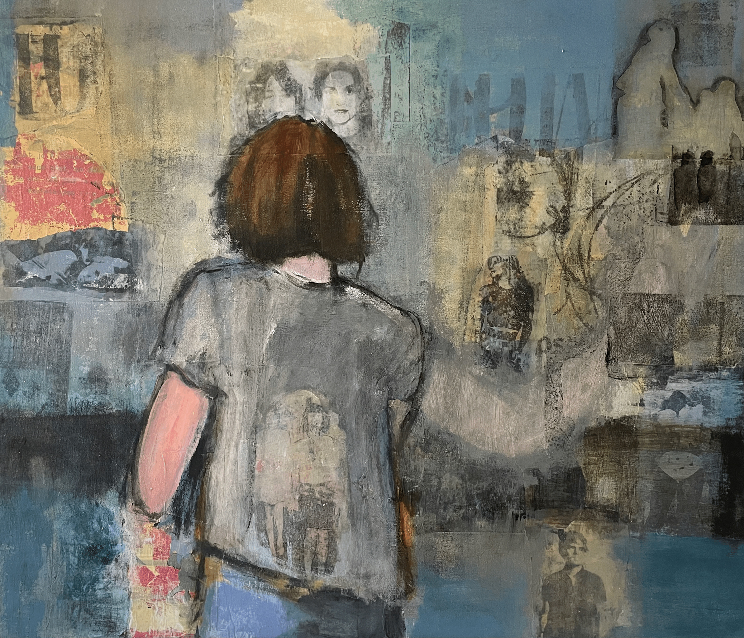 Acryl op doek 60 x 70 cm (gelliprint en collage)