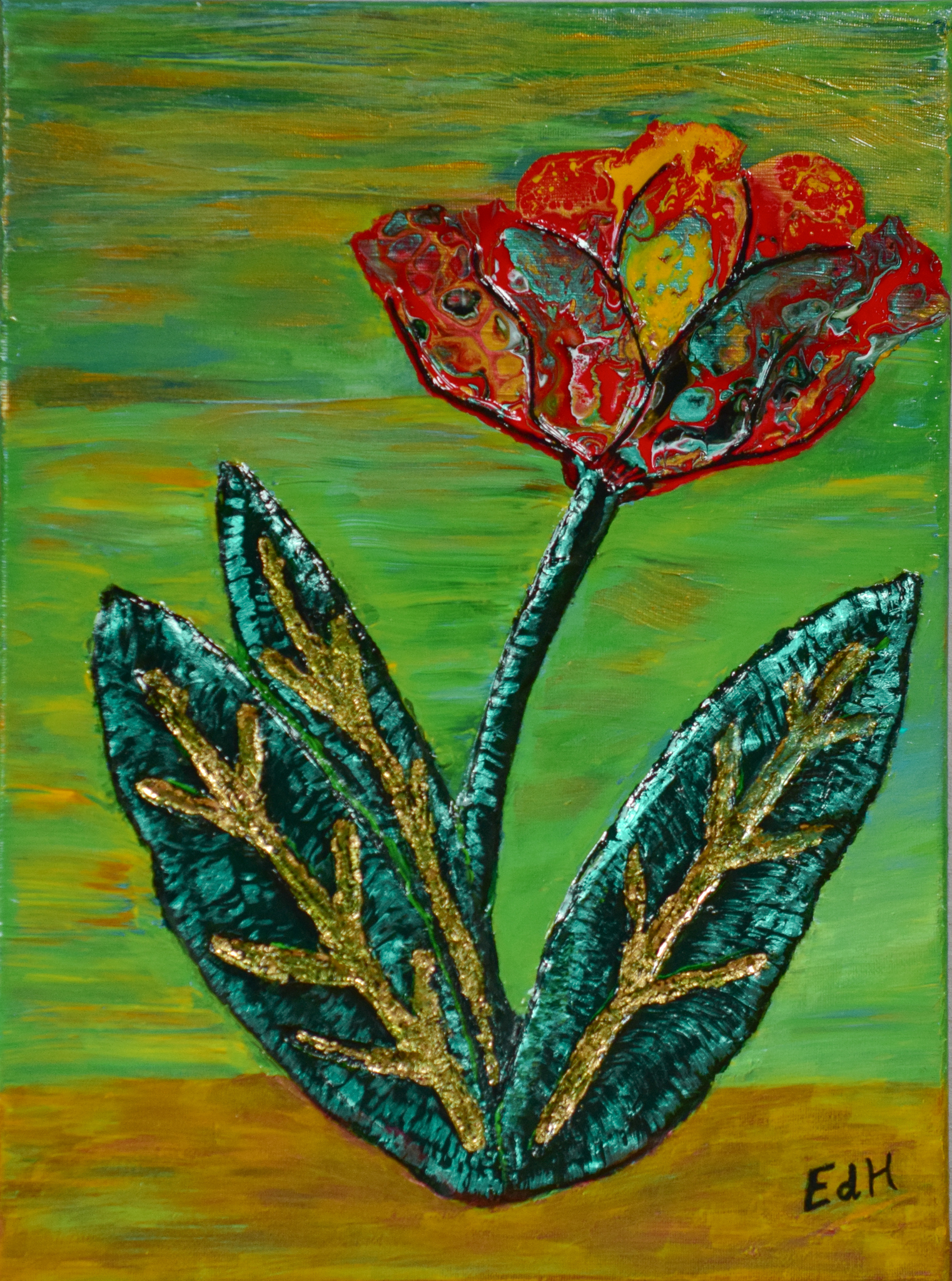 Schilderij van acrylverf op canvas, gecombineerd met structuur.