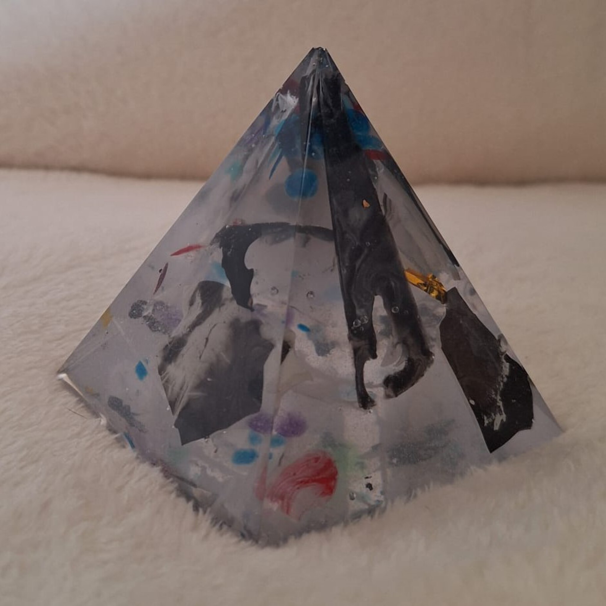 Orgonite / piramide met restantjes hars in diverse kleuren