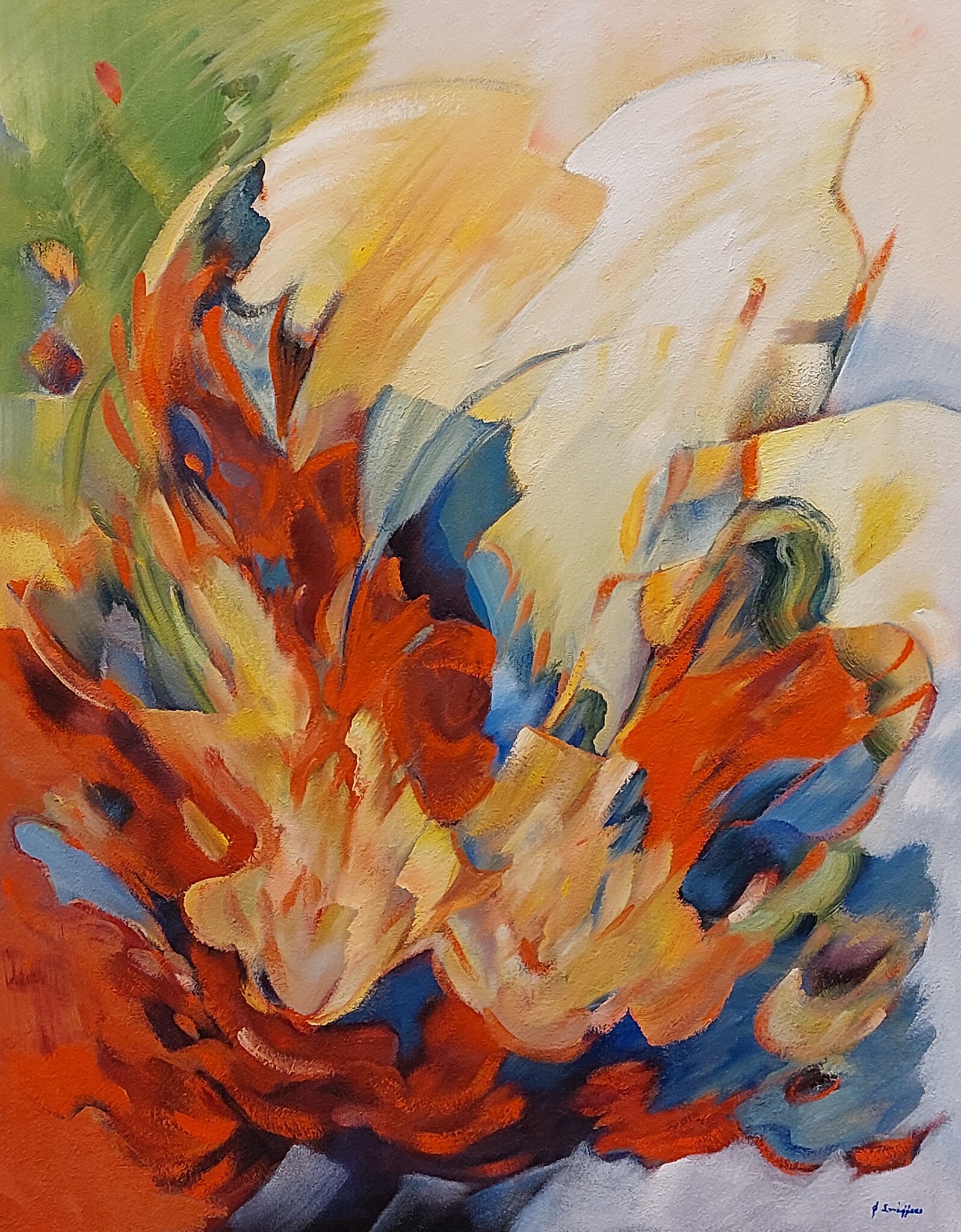 Door J. Luque - De kleuren lijken te bewegen als wind, water en vuur die samen een choreografie uitvoeren. Een ode aan de natuurlijke krachten.