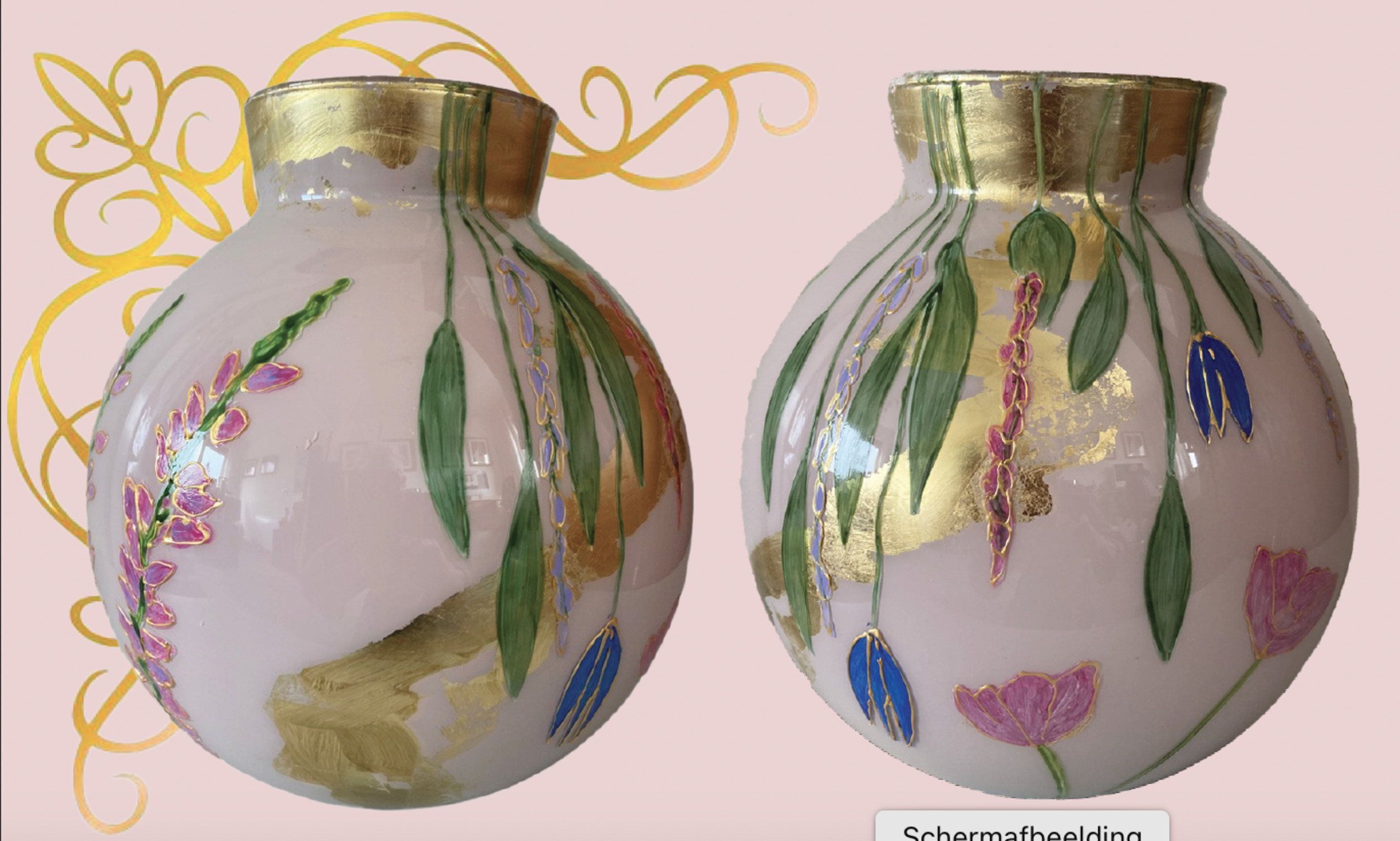 Handgeschilderde glasvaas met een vleugje goud
