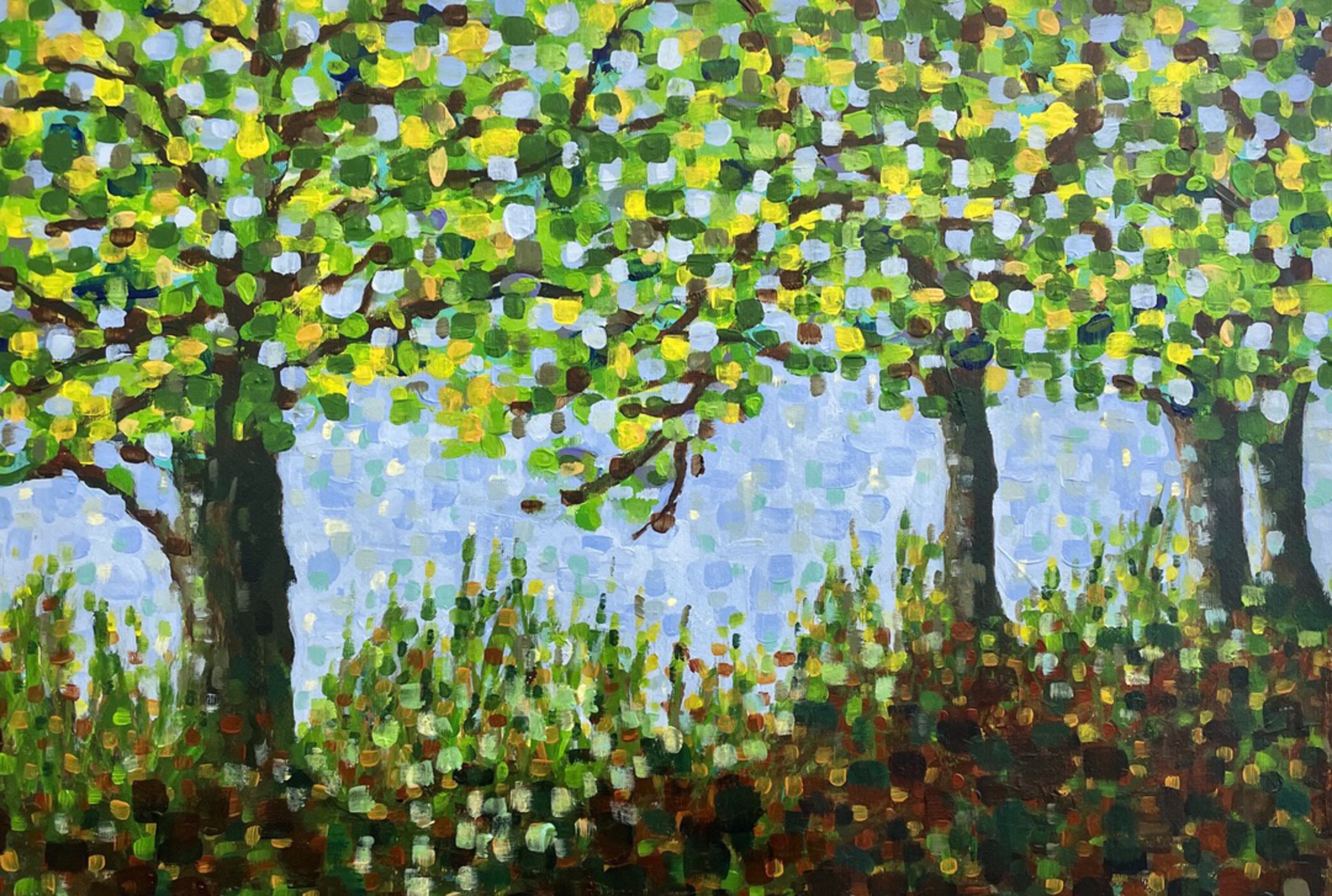 Geel Acryl Groen Papier Kunst Bomen Boom Kleur Blokjes