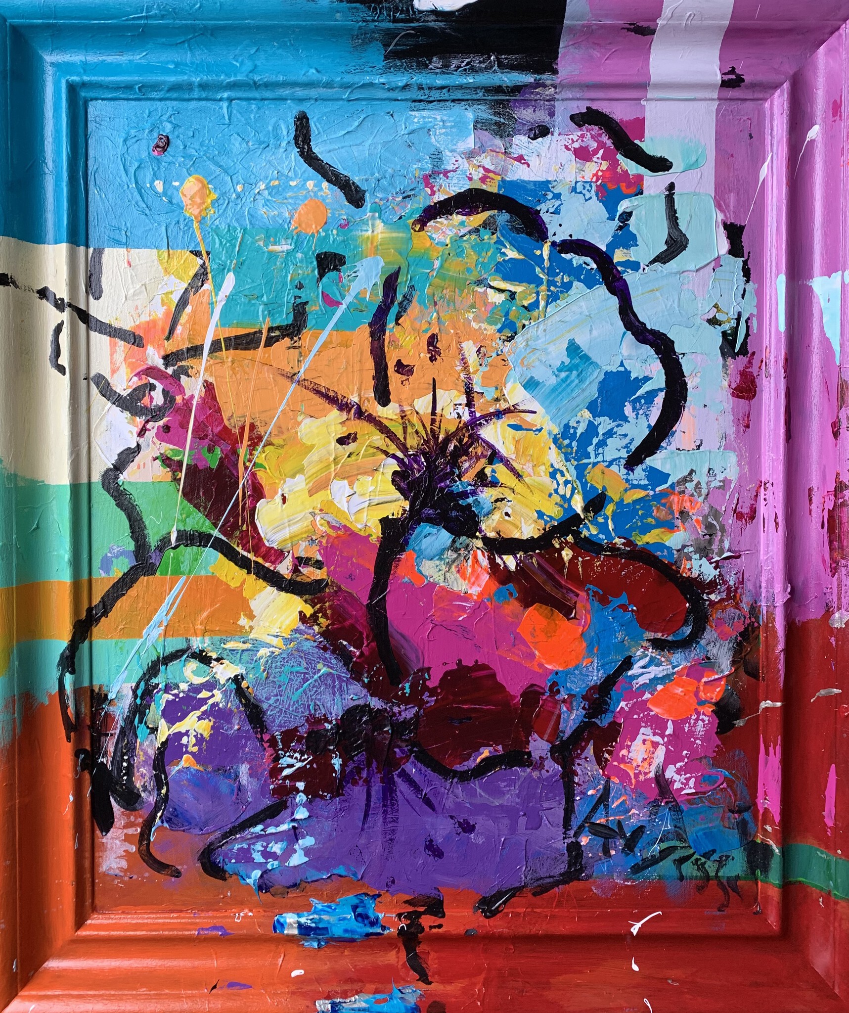 "Wonderful flower" Acryl op doek in meegeschilderde lijst