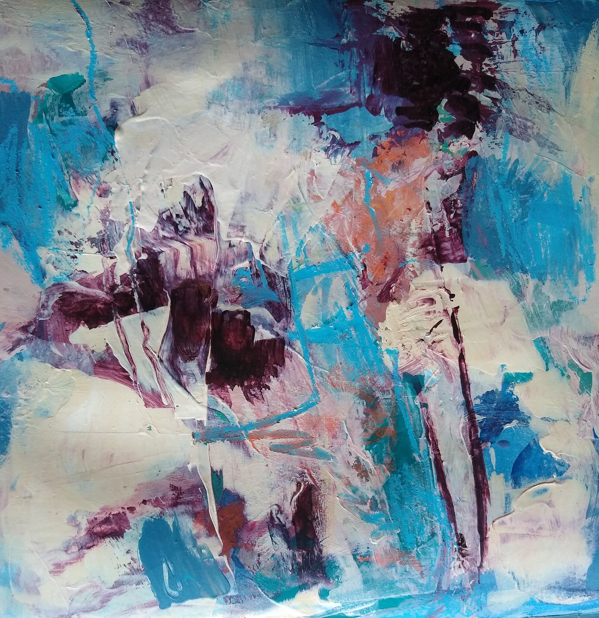 Blauwen Wit Purpel Bloemachtig Geabstraheerd Acryl Minimalistisch Lyrisch Poëtisch