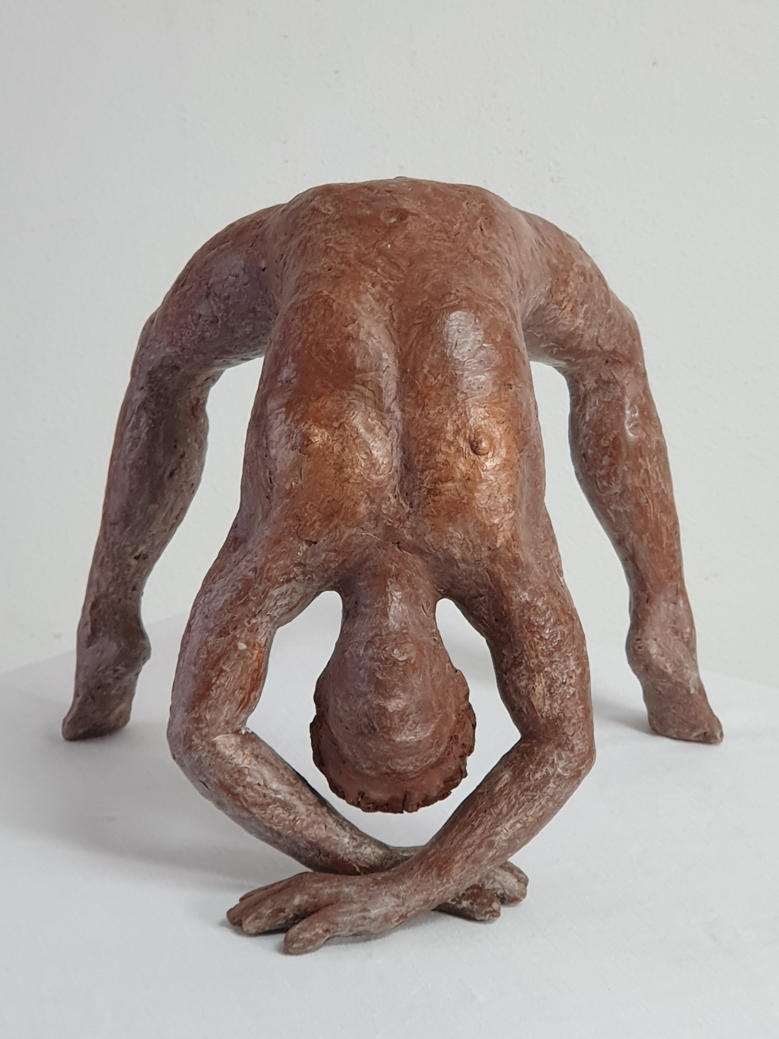 Ben. Als je de wereld als een spin wil zien, moet je een bruggetje maken, denk ik. Kunsthars gepatineerd in beige/camel of in roodbruin/hazelnoot. Beperkte oplage en gesigneerd.