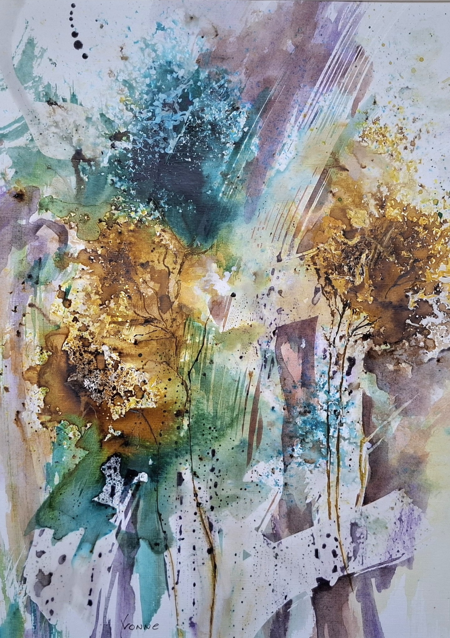 Na jaren schilderen met aquarelverf is Yvonne Siemelink na een aantal jaar overgestapt op werken met acrylverf. Een mooie boom, een detail uit een foto, of een tussendoor gemaakte krabbel kan aanleiding zijn tot een, meestal geabstraheerd, schilderij. Door haar werken in meerdere lagen op te bouwen bereikt zij een specifieke eigenheid in haar werk.