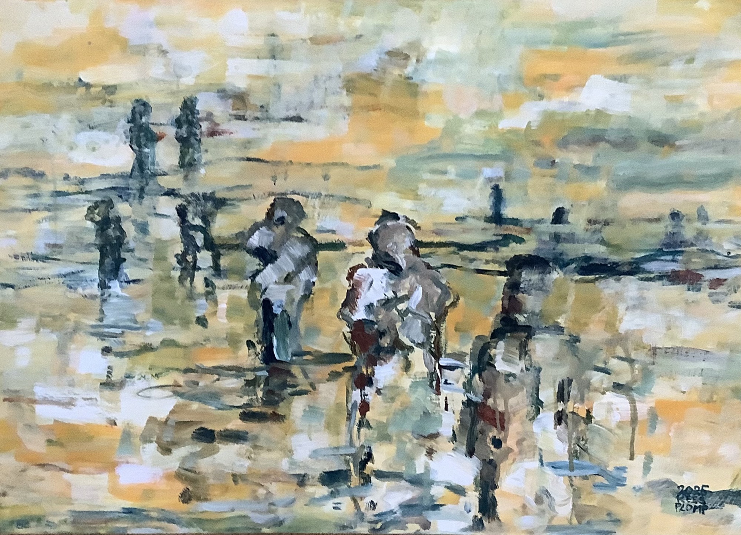 Kees Plomp, Oud-Beijerland, 1949. Beeldend kunstenaar, schilderen, aquarelleren en tekenen. Na de middelbare school ging ik naar de Rotterdamse kunstacademie. Wanneer een onderwerp mij boeit levert dit meestal een reeks werkstukken op in verschillende materialen en van diverse afmetingen. In het proces van eerste schets naar schilderij wordt de natuurgetrouwe weergave minder belangrijk. In de loop van de jaren heb ik meerdere thema's zo uitgewerkt. Voor het meest recente werk zijn tijdens reizen gemaakte schetsen vaak het uitgangspunt geweest. Verder is mijn belangstelling voor het sjamanisme een inspiratie.