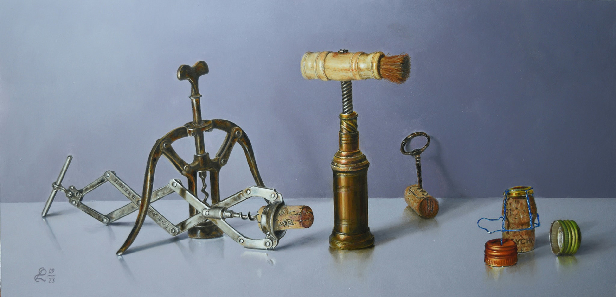 Een opdracht van een verzamelaar van kurkentrekkers. Ik probeer de onderwerpen te transformeren naar "personen" die verbaasd kijken naar de schroefdopjes.