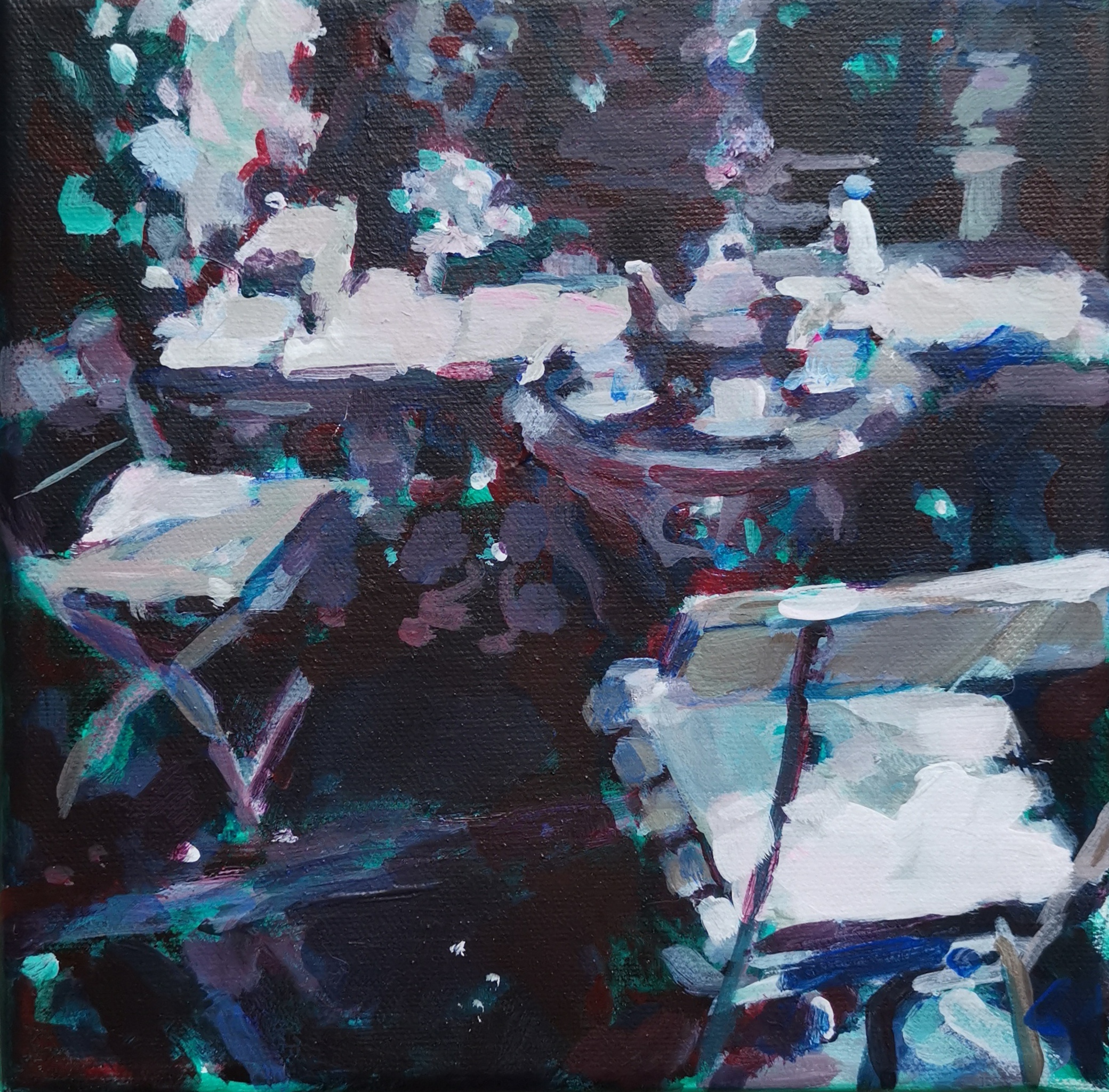 Van binnen naar buiten kijken staat centraal. Daarbij een focus op het verkennen van de diepte van kleur en de kunst van het expressief vastleggen van licht op doek.