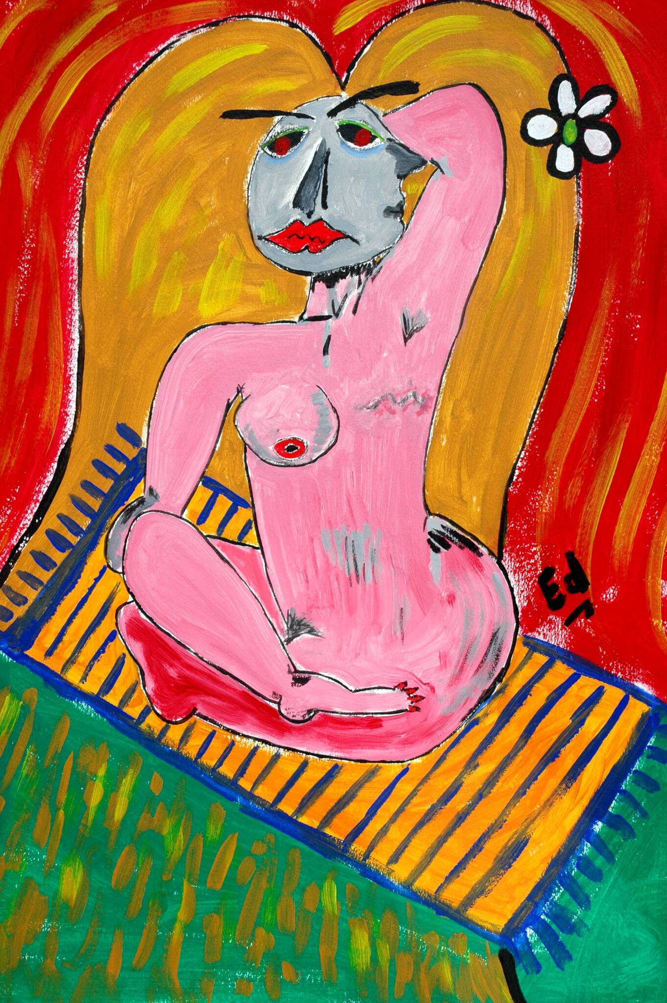 De huidige Edu schildert met waterbased olieverf op canvas, kenmerkend zijn de felle kleuren en de verstilde beweging.