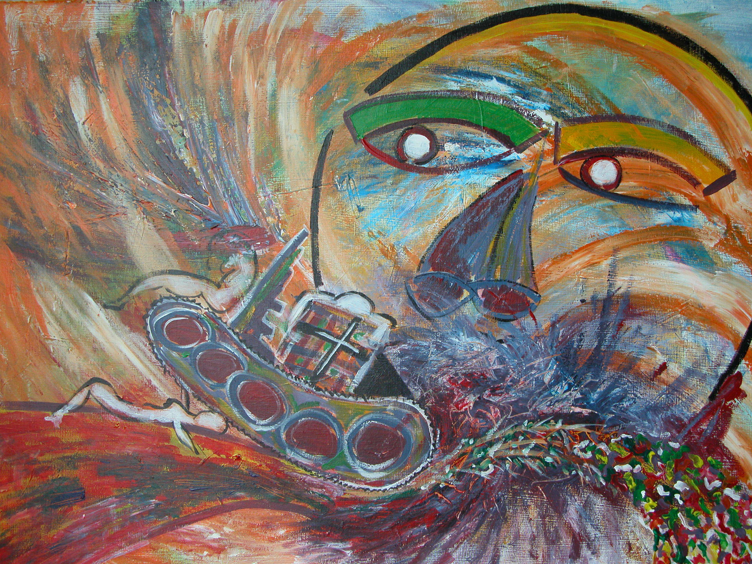 De huidige Edu schildert met waterbased olieverf op canvas, kenmerkend zijn de felle kleuren en de verstilde beweging.