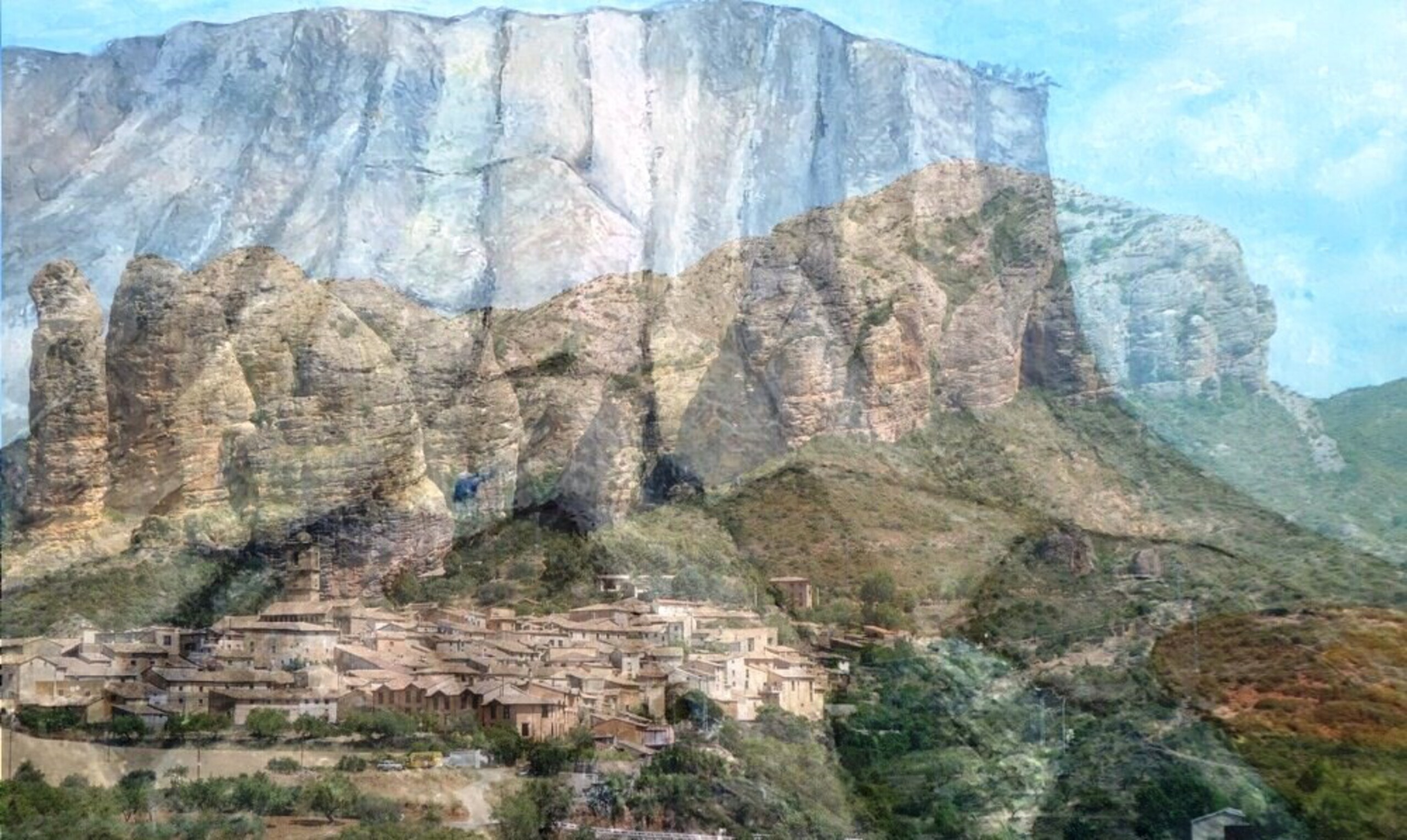 Licht Bergen Dorpje Fotoschilderij Pyreneeën Spaanse Bergbeklimmer