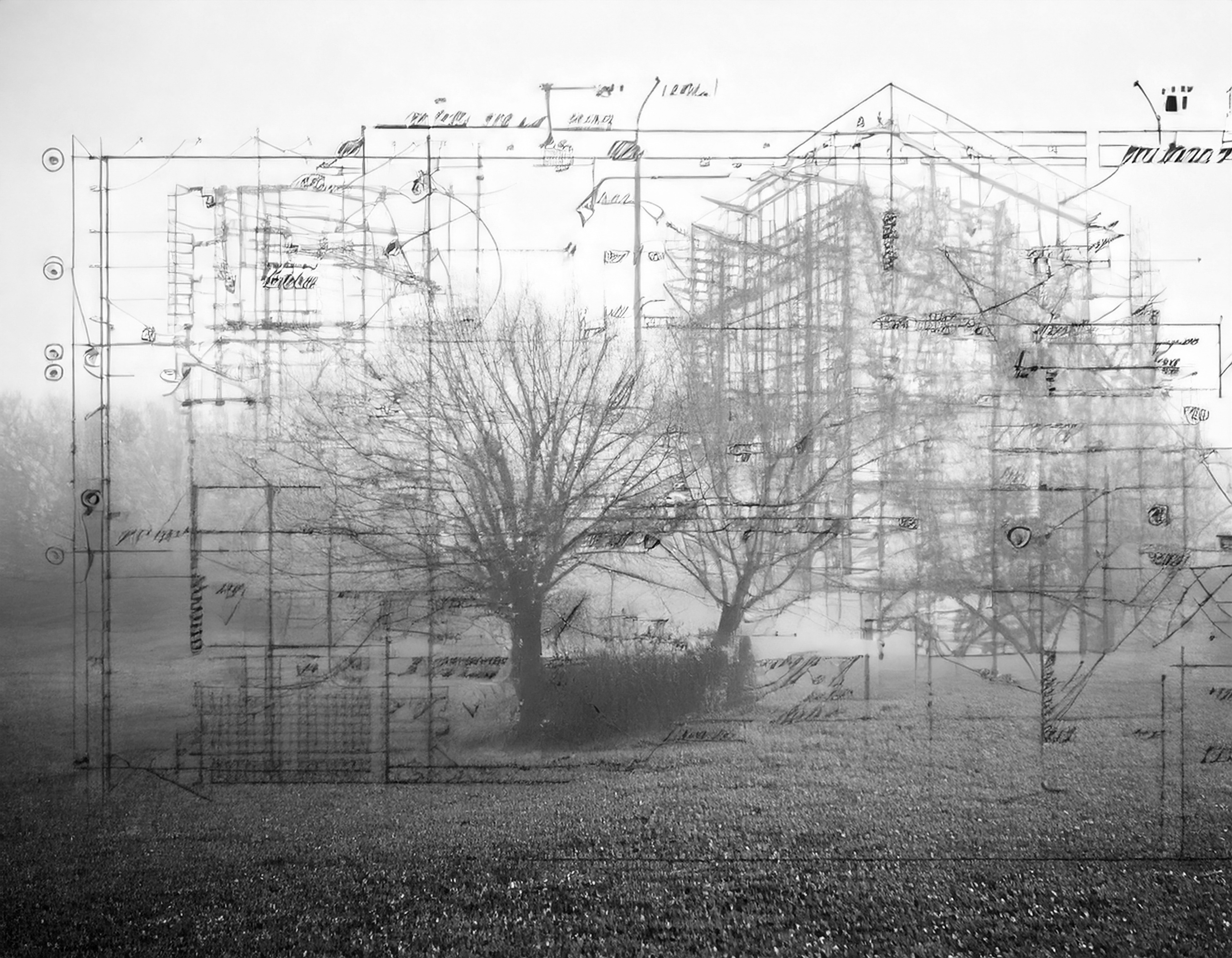 Ruimte Structuren Landschappen Zwartwit Mens Interactie Natuur Architectuur Digitalekunst Kunst Kunstenaar Abstraherend Geometrisch Landschap Constructies Projecten Contemporaryart Bomen Boomkap