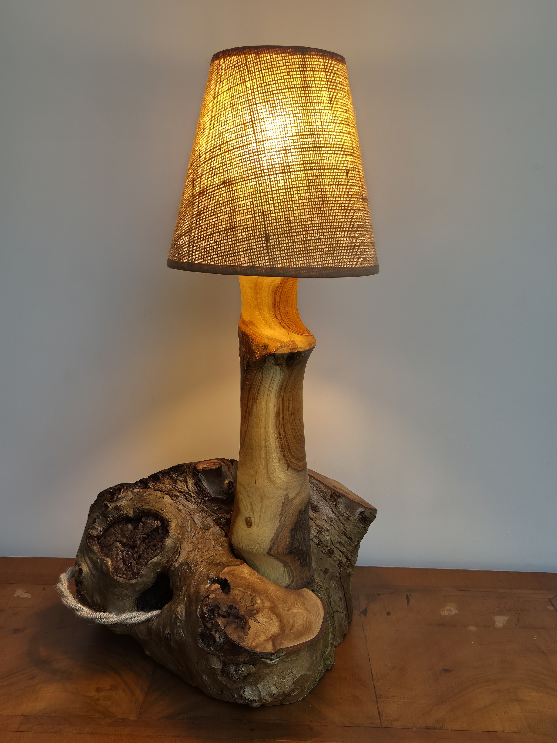 In opdracht van een kennis heb ik de poot voor een lamp gedraaid van gouden regen. Voor de voet heb ik een onbekend stuk hout uit het bos gebruikt. Een eenmalige uitdaging, wel geslaagd.