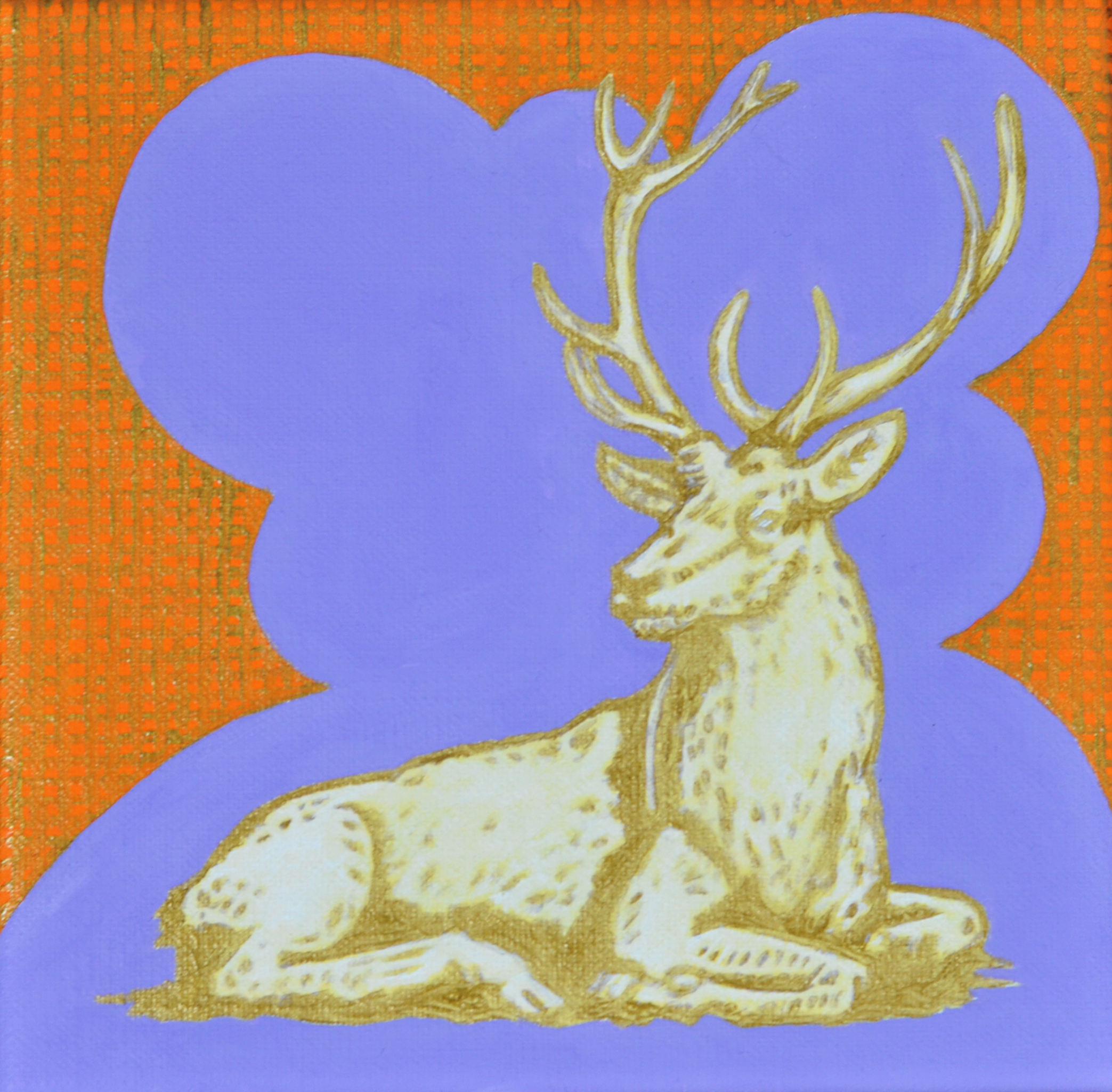 Oranje Paars Goud Gouden Vierkant Surreëel Liggend Hert Beeldspraak Uur Rustend Edelhert Beeldtaal