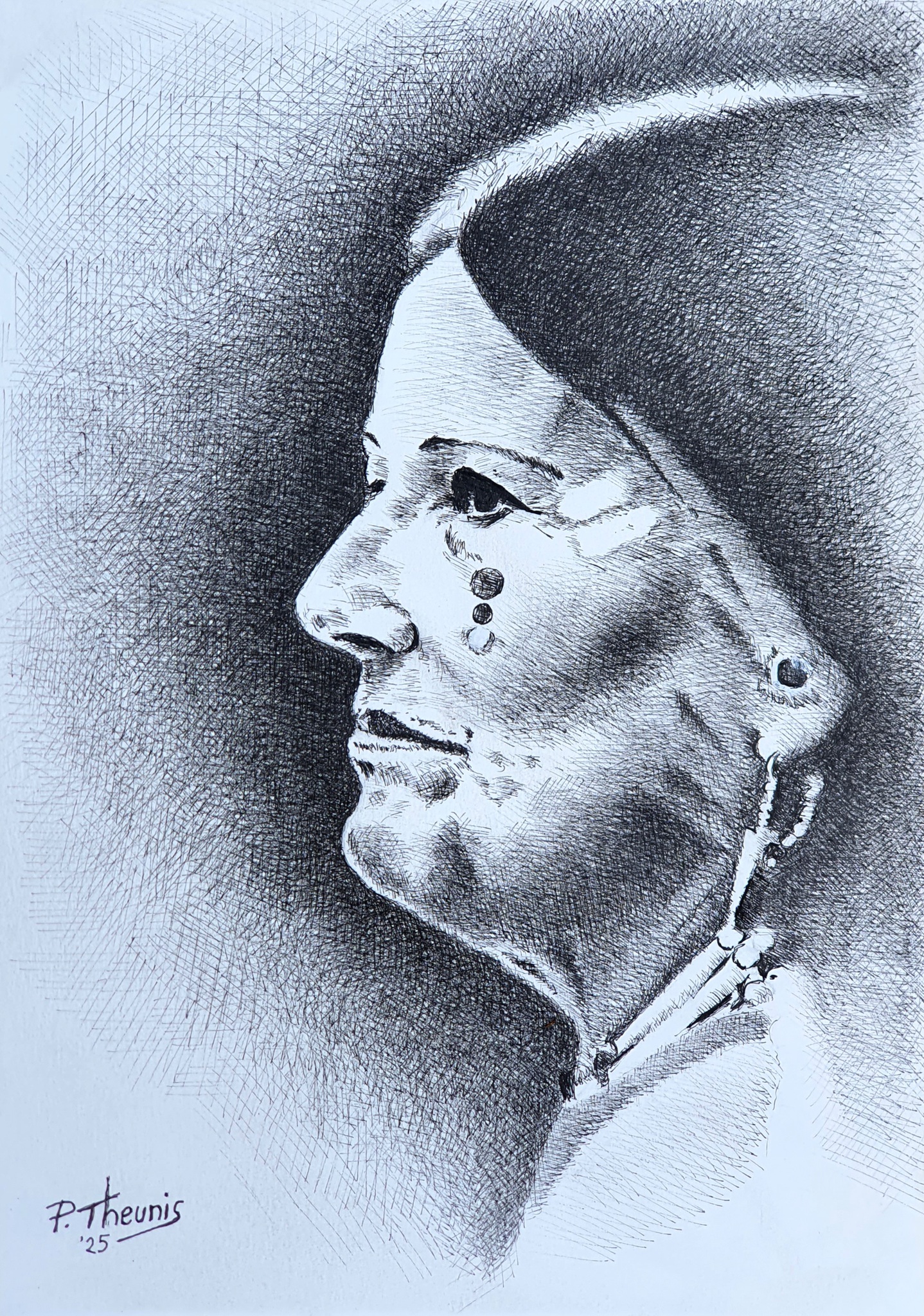 Pentekening van een prachtig Native-vrouw