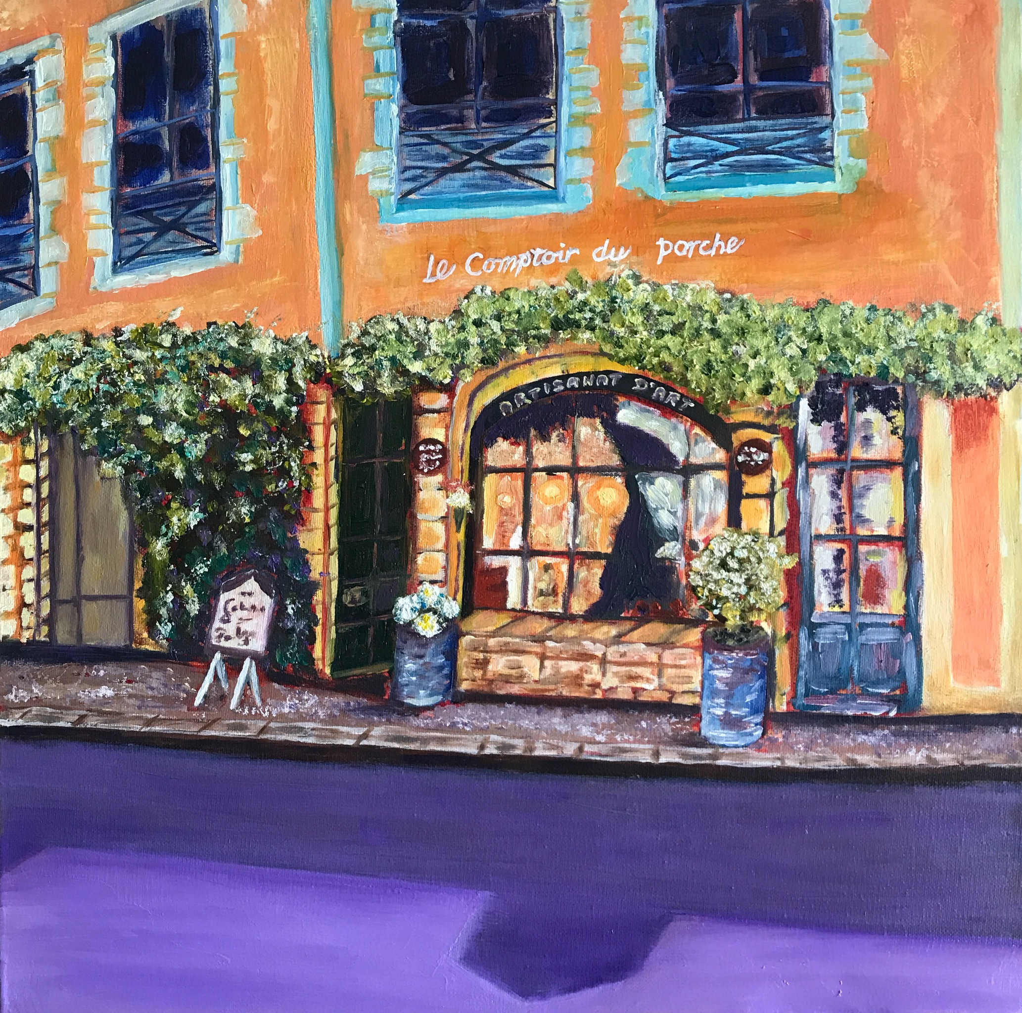 Nostalgische Boutique en Tearoom in Normandië, (Fr). Schilderij naar eigen foto, zomer 2024