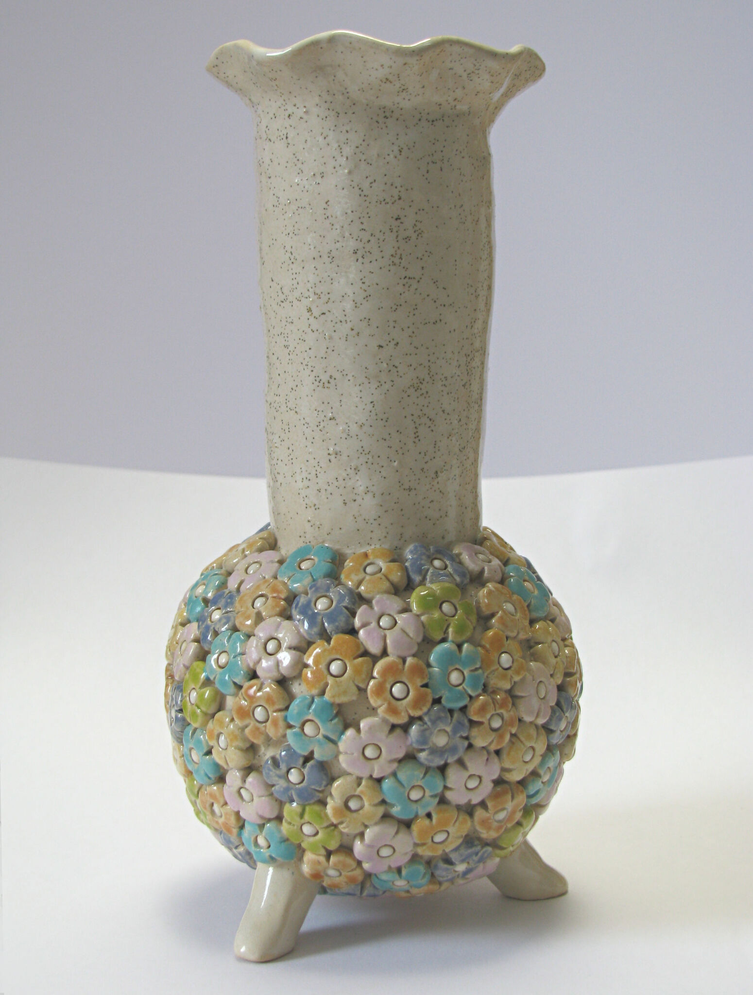 handgevormde vaas. ook de bloemetjes zijn per stuk handgemaakt