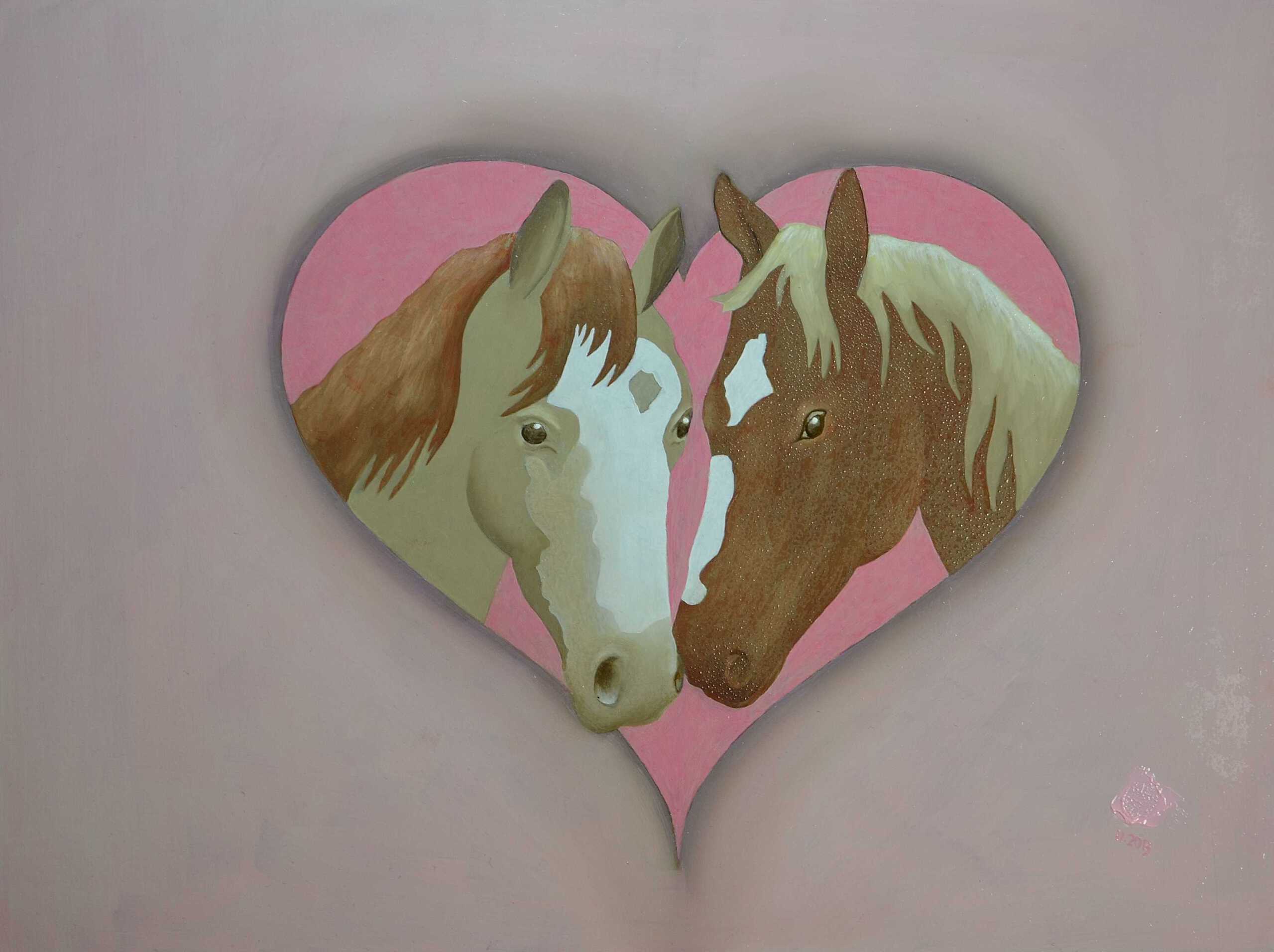 Hart Olieverf Paneel Paarden