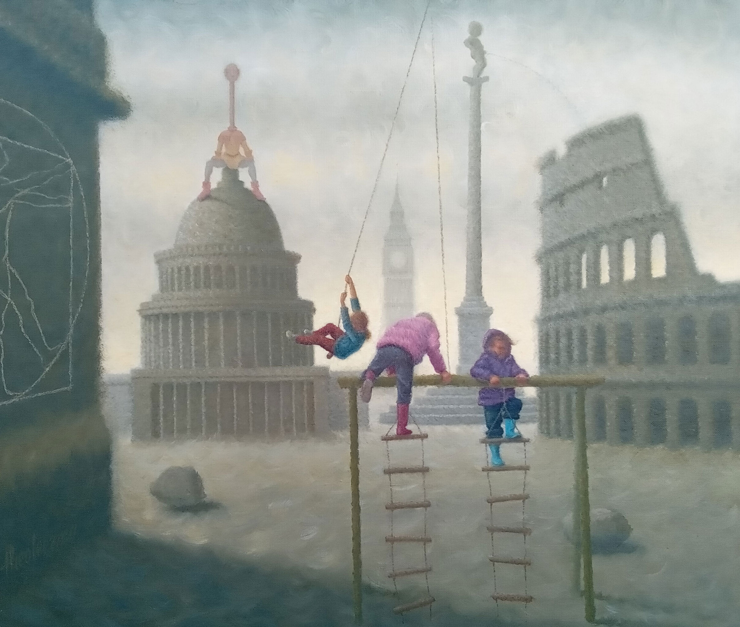 Na het voltooien van een grafische opleiding en jarenlange zelfstudie is Theo Leering sinds enige tijd full time werkzaam als beeldend kunstenaar. Zijn stijl valt moeilijk in één hokje te plaatsen maar is altijd figuratief. Het beweegt tussen realistisch en absurdistisch en is vaak melancholisch van toon. Achter deze melancholie schuilt te allen tijde een sprankje hoop. De thema’s lopen sterk uiteen al speelt muziek in veel van zijn werk een belangrijke rol. In principe kan alles wat op zijn netvlies verschijnt, hoe klein of ogenschijnlijk nutteloos ook, dienen als idee voor een schilderij. In opdracht maakt Theo portretten en muurschilderingen. Daarnaast geeft hij een aantal dagdelen per week les in tekenen en schilderen.