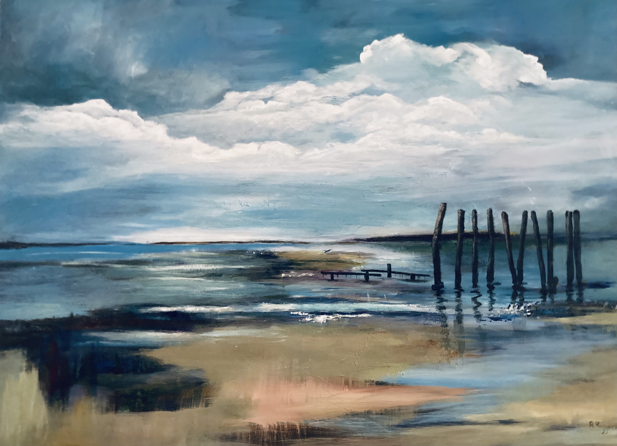 Al mijn gehele leven ben ik geboeid door de teken- en schilderkunst, zo’n 25 jaar geleden ben ik serieus met het volgen van lessen begonnen. Hier ontdekte ik allerlei nieuwe technieken en materialen, waardoor mijn kennis flink uitgebreid is. Lange tijd hadden dieren mijn aandacht, maar naar aanleiding van wandelingen langs de zee, begon mijn interesse te groeien voor alles wat bij de zee te zien en vinden is. Verder teken ik ook babygezichtjes op papier. Muurschilderingen in bijv babykamers, kinderkamers etc.doe ik in opdracht. Ook het abstracte heeft mijn interesse, dan is het fijn niet te hoeven werken binnen afgepaste kaders. Ook geef ik les aan volwassenen, ik heb een groepje van 5 dames en dat is genoeg, zodat iedereen voldoende aandacht krijgt.