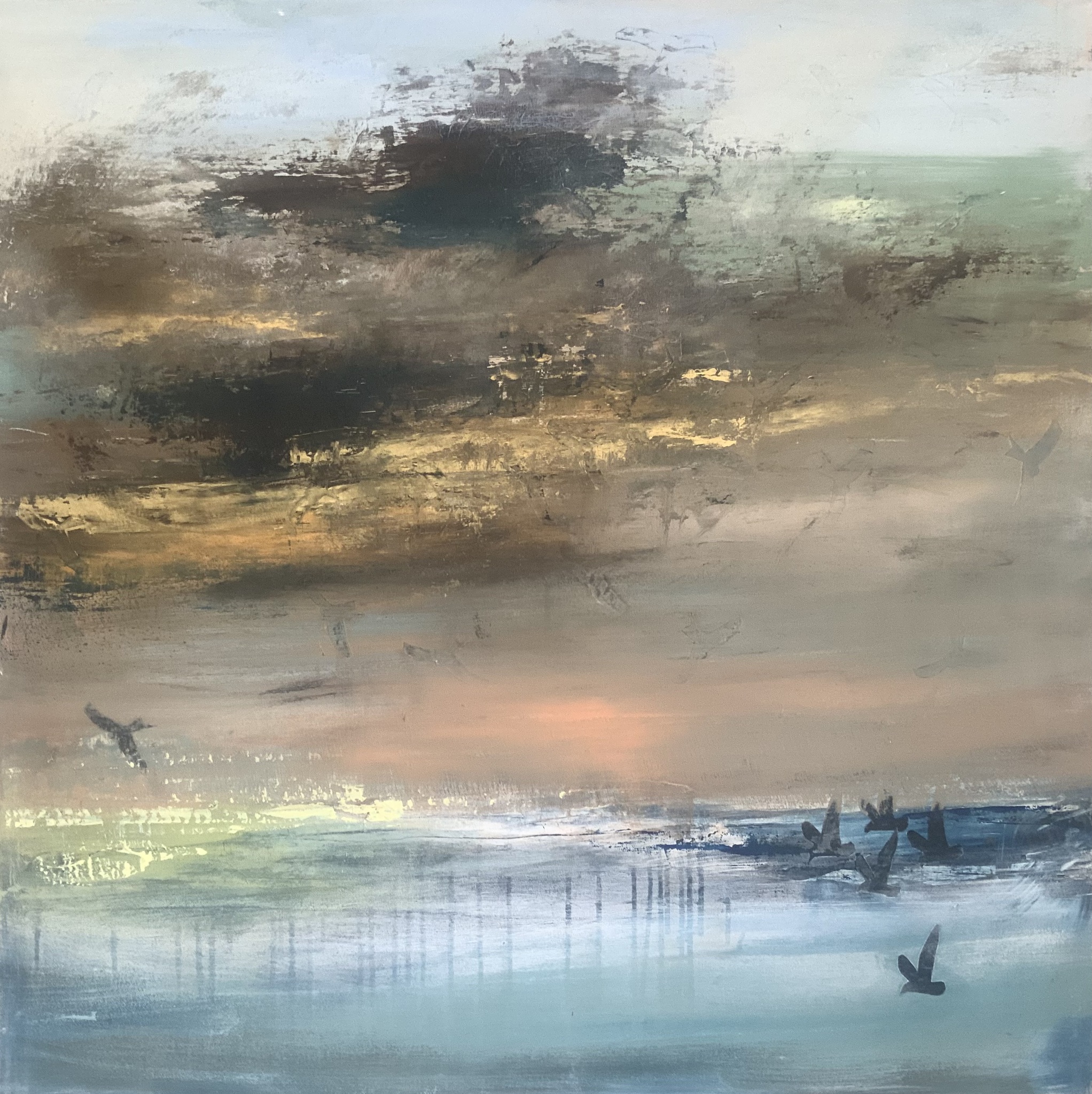 I see an abstract painting but I can see a landscape too. A landscape with heavy clouds, the beach and birds searching for food and enjoying their Freedom......but it's not what you look at that matters, it's what YOU see.