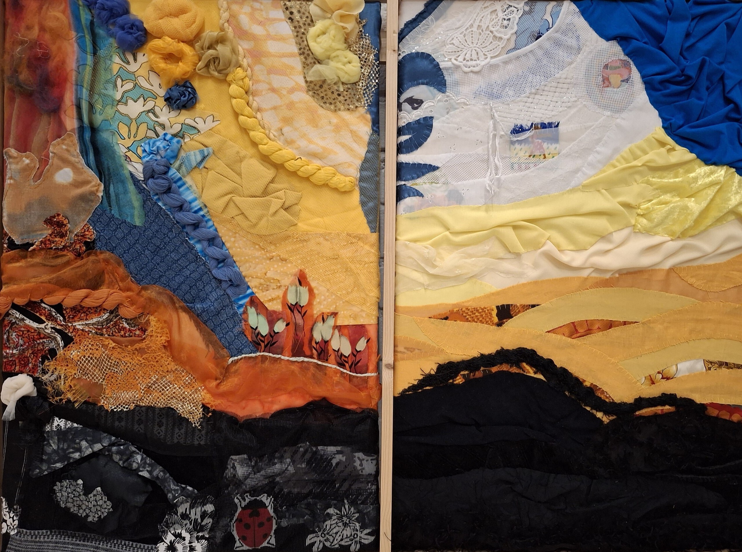 Opdracht van KPA om een werk te maken over vrede. Samen met een collega Liesanne den Haan, een tweeluik gemaakt. We hadden alleen de kleuren afgestemd. Het rechtse werk is van mij. Tentoongesteld op 05-05-25 en uitgelegd wat wij hebben uitgebeeld met ons werk over vrede, onder de leden en genodigden. Op deze middag is ons werk ook verkocht.