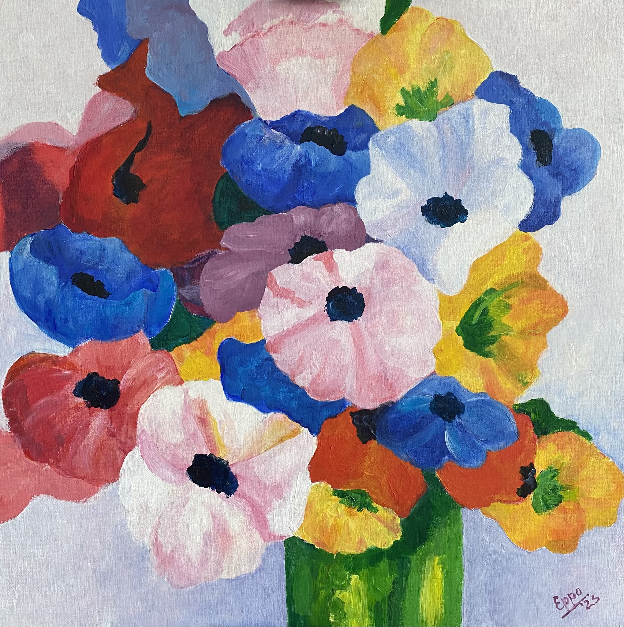 Spontaan geschilderde veelkleurige anemonen / spontan gemalte vielfarbige Anemone