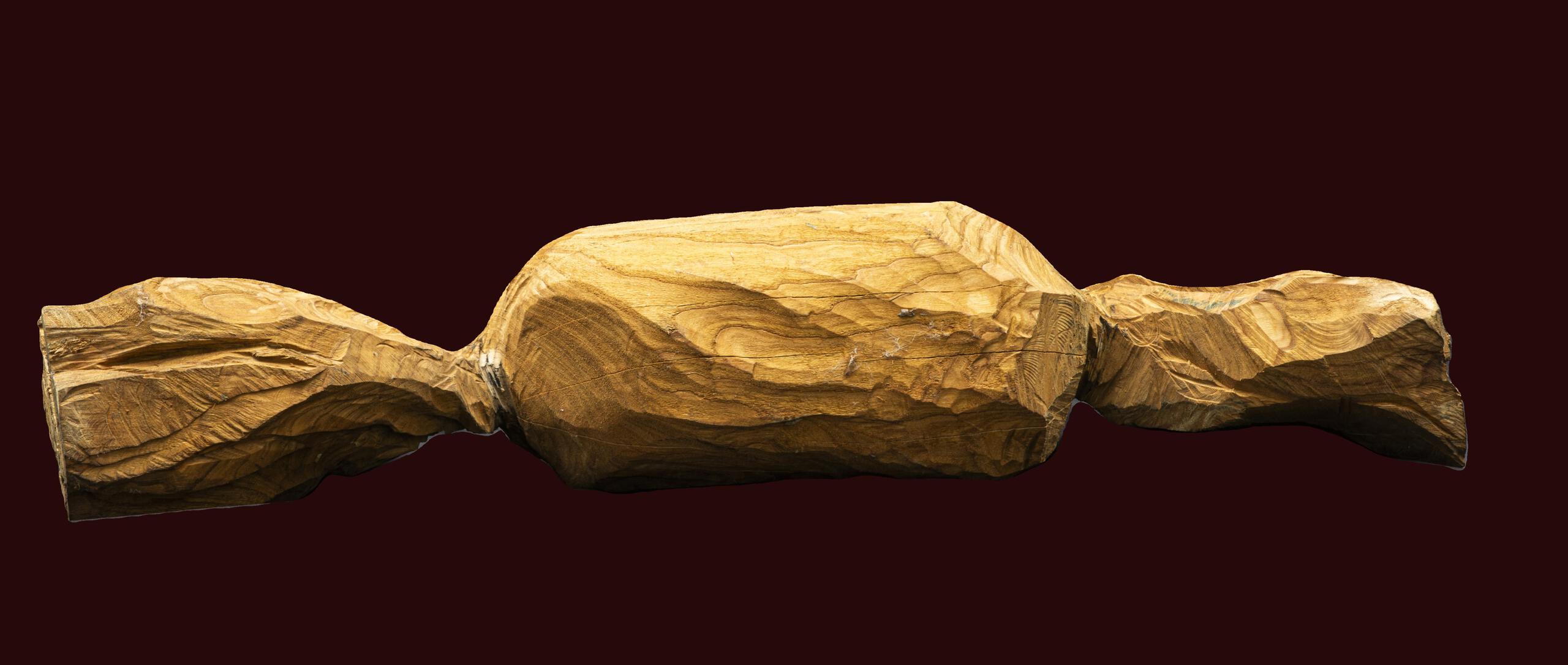 Een uitvergrote versie van een bonbon, liggend catalpahout. Kan zelfs als zitbank gebruikt worden!