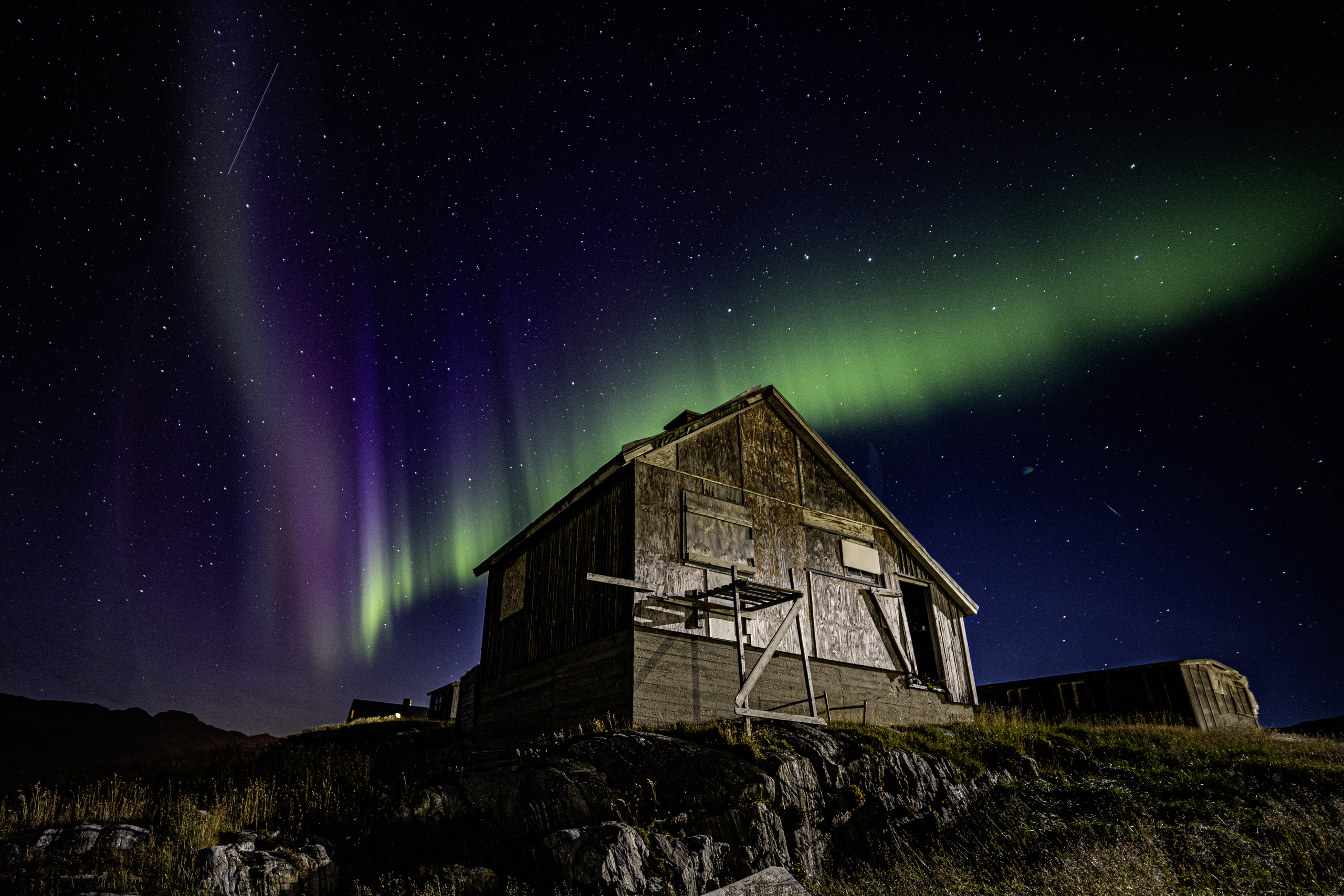 Groen Nacht Kleur Hemel Houten Sterren Huisje Noorderlicht Groenland
