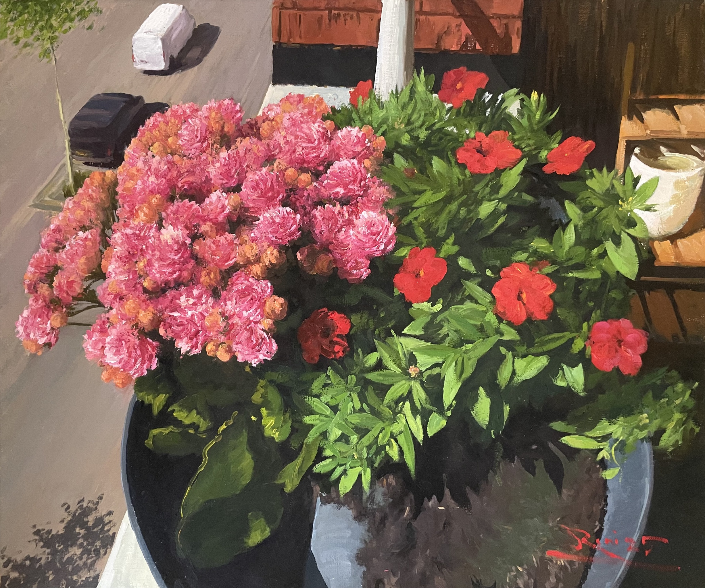 Kalanchoe en ander soort kleine rode bloemen op mijn balkon