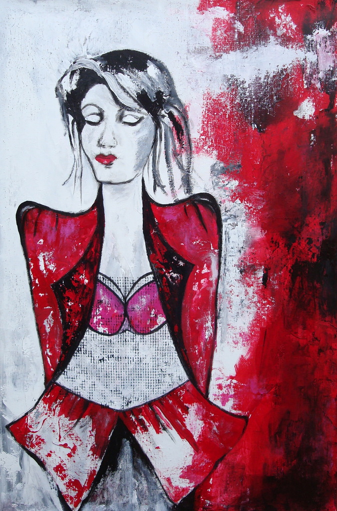 Abstracte schilderijen, met een intens kleurenpalet, waarbij gebruik gemaakt wordt van verschillende materialen en technieken. Vergankelijkheid heeft haar grote passie.
