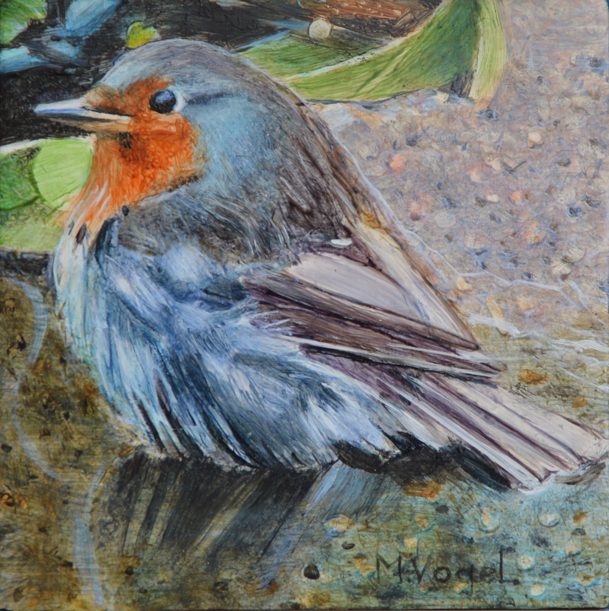 Roodborst Water Groen Blauw Rood Grijs Zand Vogel Dier Natuur Robin Green Blue Grey Sand Bird Animal Nature