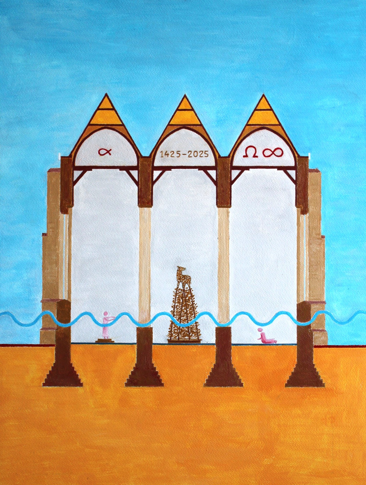 De Sint Janskerk is de kerk van verbintenis met Johannes de Doper en het herrezen Lam van God, dat gemaakt is van het puin van de beeldenstorm. De doop verbindt en het Lam neemt de zonde weg. Beide elementen zijn in het schilderij 600 jaar Sint Janskerk verwerkt. De kerk is de plaats van ontmoeting voor de mensen met God en met elkaar.