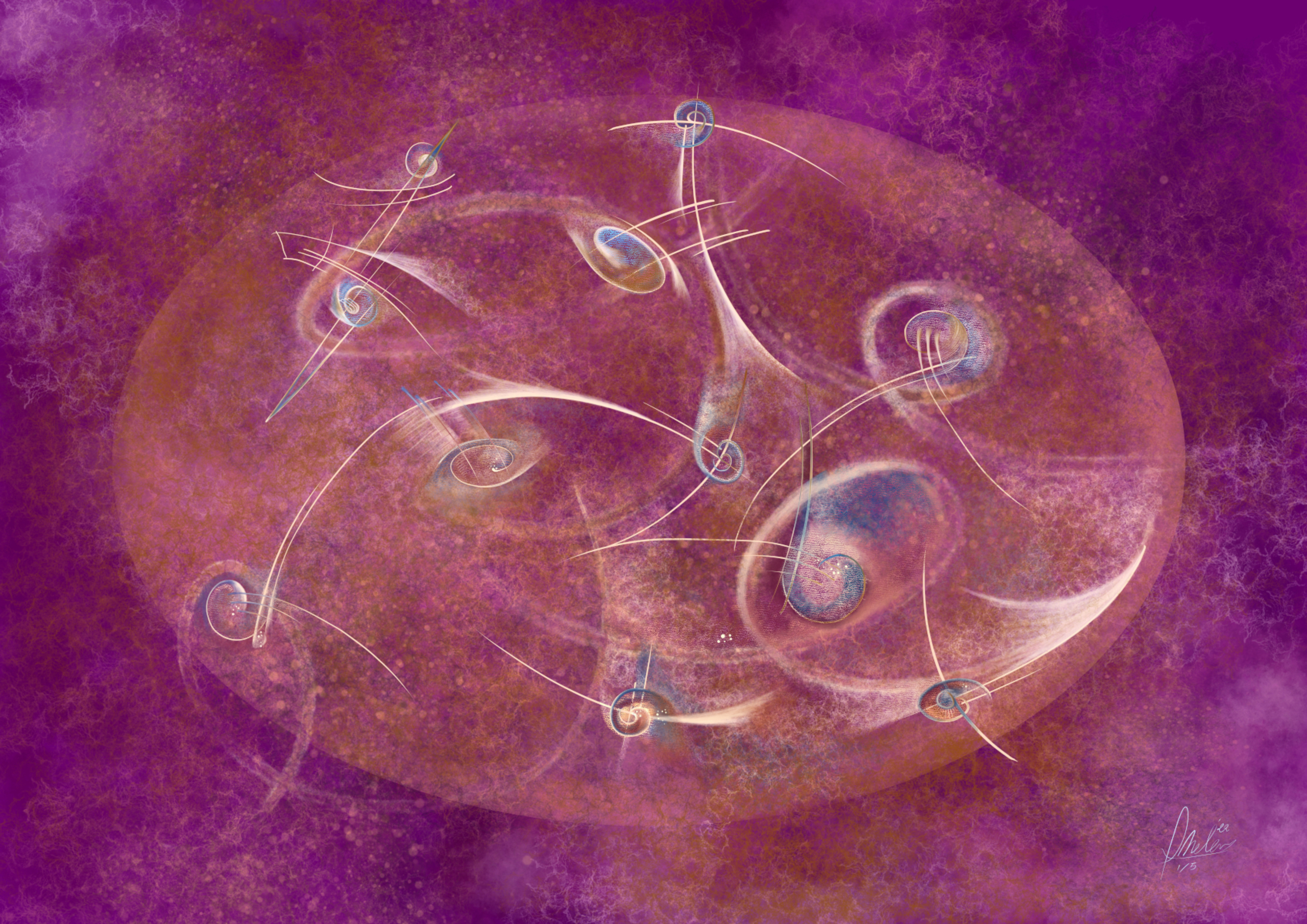 Levensdans – De energie van het ontstaan Het ei is een oeroud en universeel symbool, dat als metafoor voor de kosmos dient. Hierin kan het leven in eindeloze variaties ontstaan en groeien. Het ei staat voor verwachting, vernieuwing en de belofte van een nieuw begin. Tegelijkertijd bevat het zowel een afgerond verleden als een onbekende toekomst. Zolang de schaal intact blijft, blijft de essentie verborgen – een idee vol potentie, dat wacht om werkelijkheid te worden. In Levensdans geef ik vorm aan de vreugdevolle energie die het leven uitstraalt. Dit abstracte digitale kunstwerk draait om beweging en transformatie. De kleuren en vormen tonen de voortdurende stroom van levensenergie. Deze energie is overal om ons heen aanwezig: in de natuur, in onszelf en in het universum. Het werk nodigt uit om mee te bewegen met deze stroming en te vertrouwen op de nieuwe mogelijkheden die zich aandienen. Oplage: 5 maximum Gecertificeerd: ja
