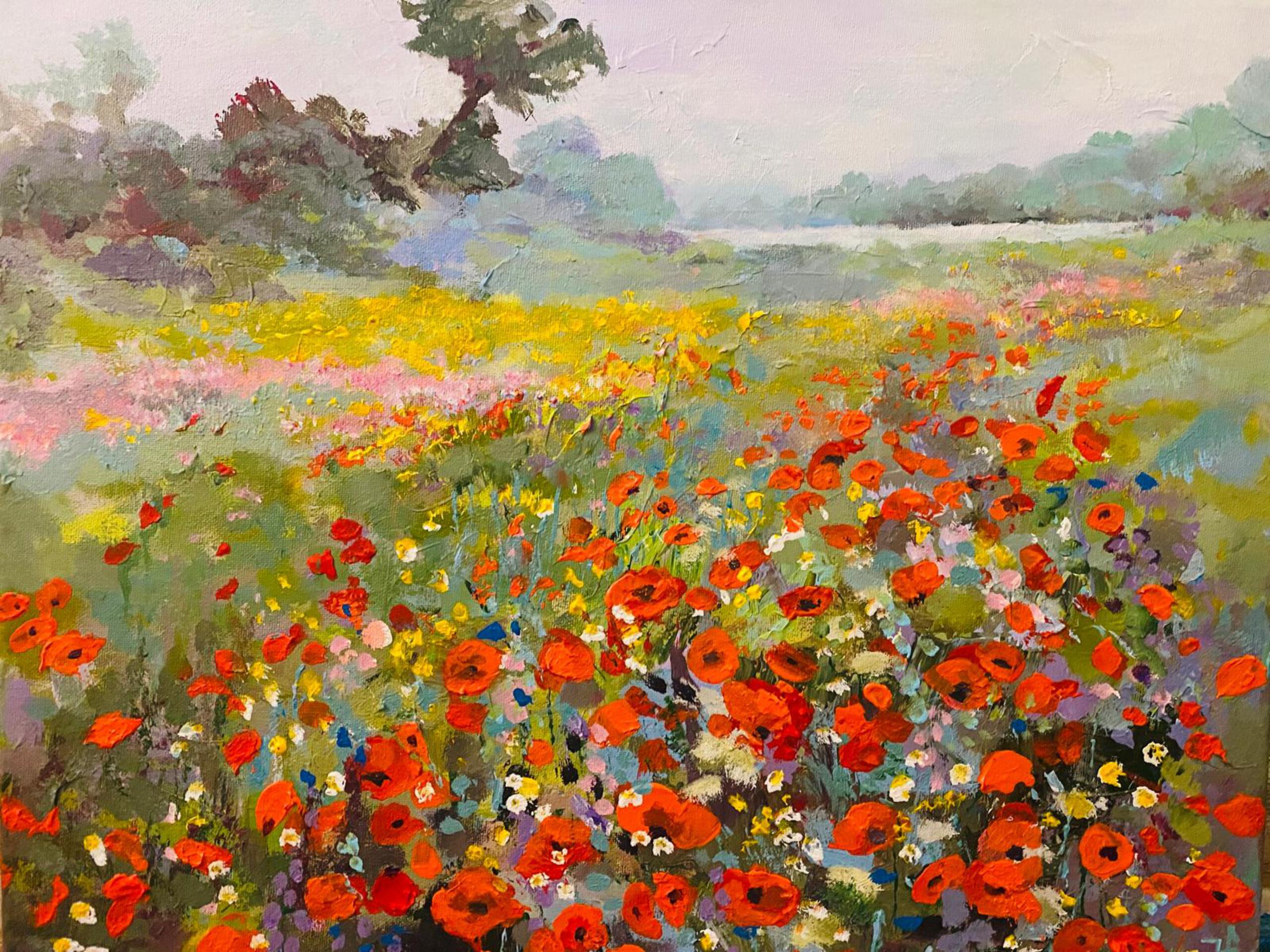 Klaprozen Schilderij Acryl Ijssel Uiterwaarden Bloemenwei Olst Joke Proper Deventer Rood Bloemen