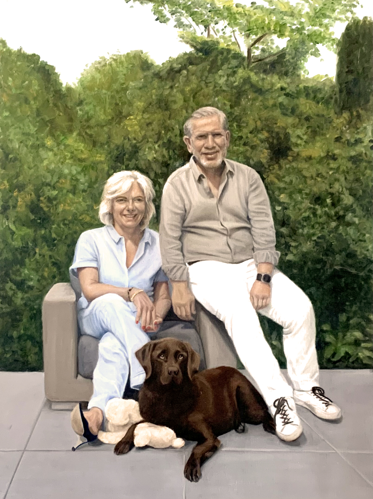 Vrouw Portret Man Olieverf Hond Realisme Opdracht