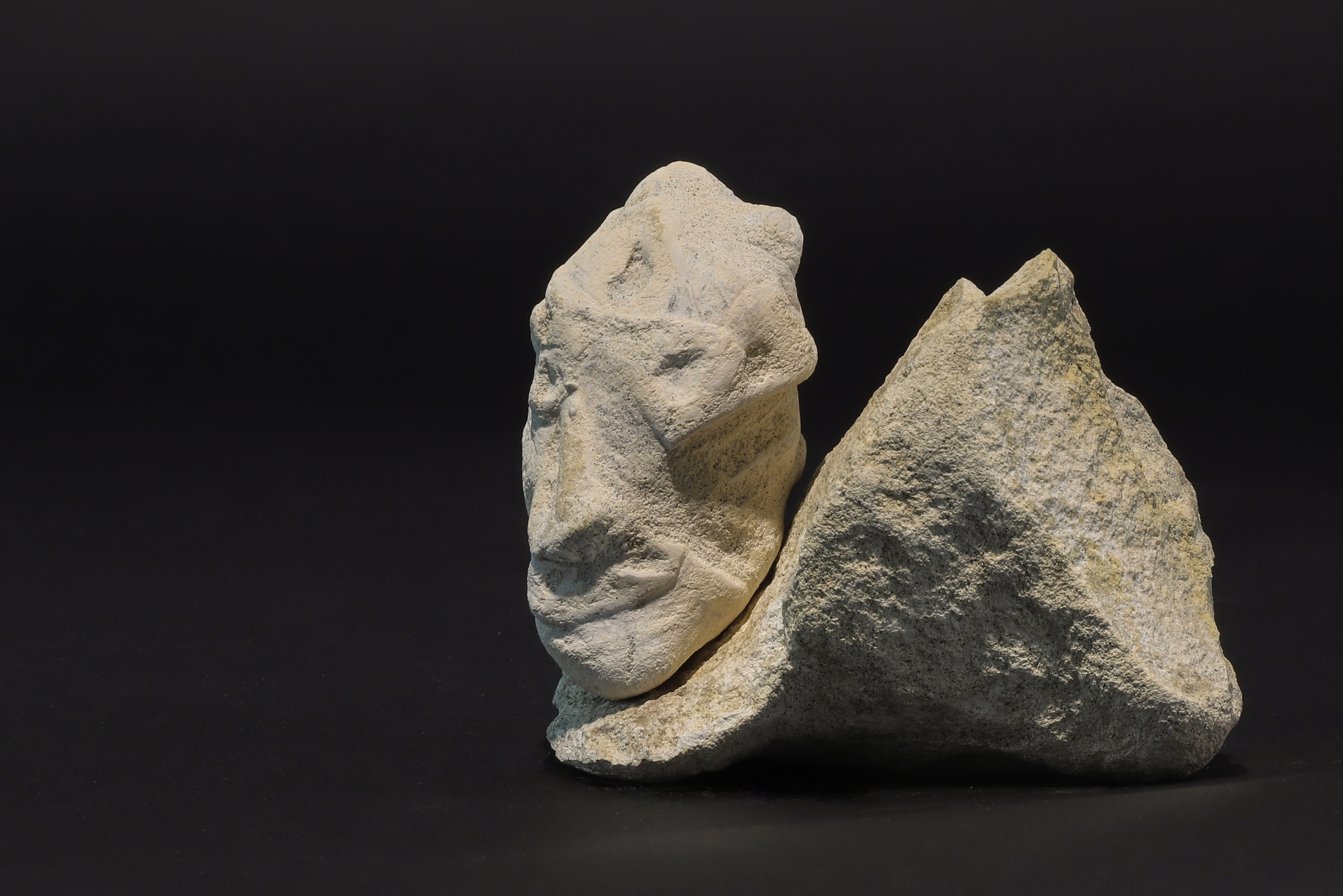 Mergelsteen gevonden in Limburg. De mens voelt zich vaak verheven boven de natuur en wil de natuur naar zijn hand vormen, beïnvloeden en aanpassen. Dit kan zowel positieve als negatieve gevolgen hebben. Bij 'Gevormd' heb ik mens en natuur laten samenkomen door mee te gaan in de structuur van de mergelsteen.