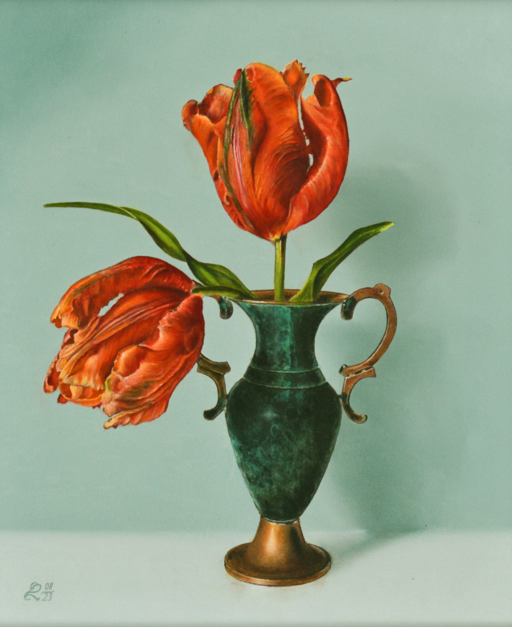 Ik verkoop mijn werk inclusief een zelf gekozen lijst. Een lijst beïnvloed de algehele uitstraling en de impact van het kunstwerk. Een perfecte lijst doet recht aan de schoonheid en de betekenis van het kunstwerk. Afmeting met lijst: 43 x 49 cm