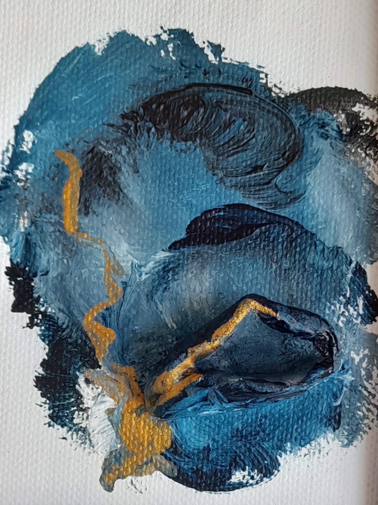 Door haar zoektocht van kleur en lichtinval, het experimenteren met andere materialen brengt Karin een impressie van abstracte tot stand. Zo probeert zij de sfeer en intimiteit van dat moment vast te leggen op doek.